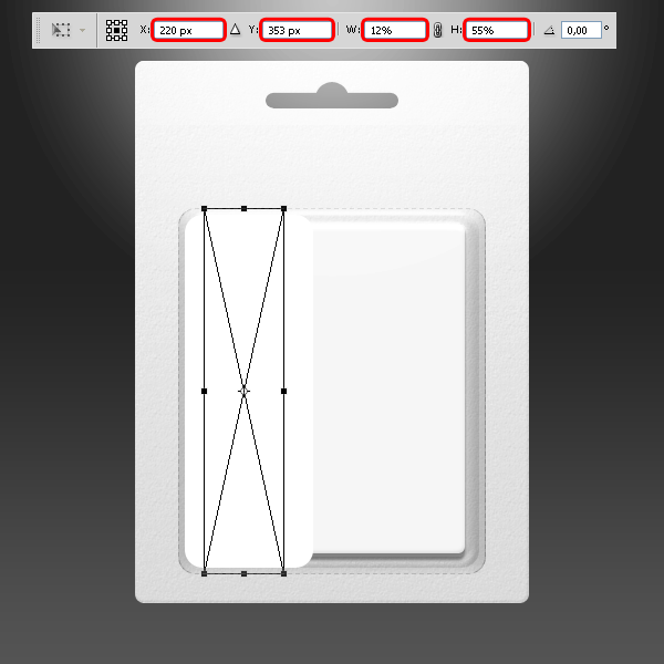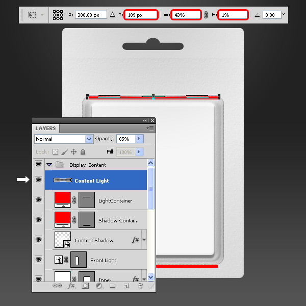 Chọn lớp “Light Content”, vào Edit > Free Transform và thiết lập các giá trị như hình dưới đây. Áp dụng các thay đổi.