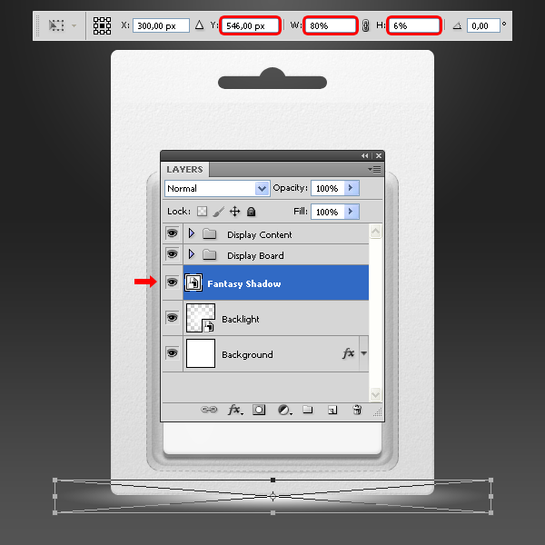 Bây giờ chọn “Content Shadow” layer, vào Edit> Free Transform và thiết lập các giá trị như hình dưới đây. Áp dụng các thay đổi.