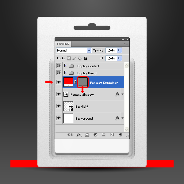 Kéo Vector Mask “Fantasy Container” xuống “Fantasy Shadow” layer và thả chuột. Xóa layer “Fantasy Container”.