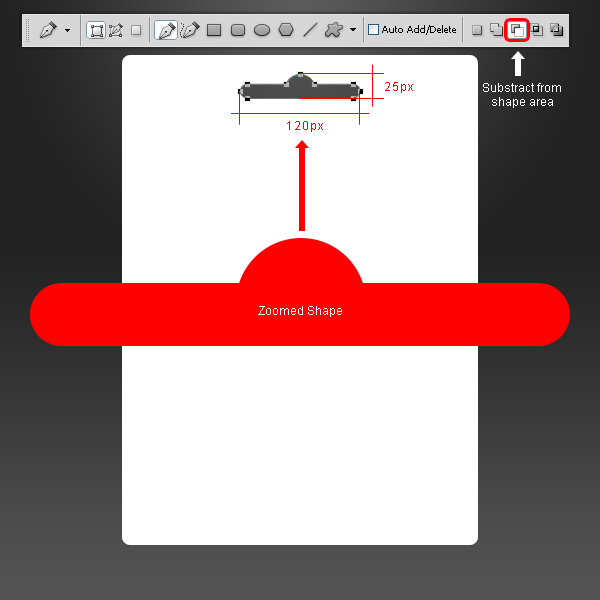 Chọn công cụ Pen Tool (P), chọn Subtract From Shape Area trên thanh tùy chọn và vẽ một shape hình như minh họa bên dưới.