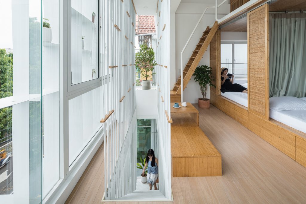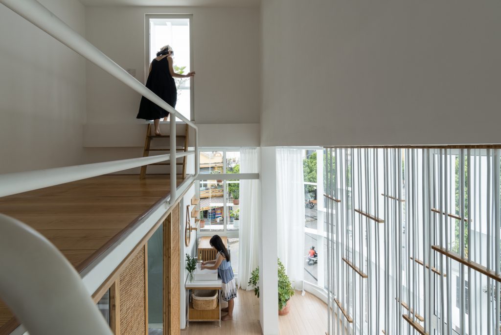 Giải pháp hiệu quả cho một khu vực xây dựng hạn chế chính là thiết kế nội thất càng tối giản càng tốt và tạo không gian liên tục và mở. Nhóm KTS tạo ra các khu chức năng và đặt đồ đạc ở đó để đưa các thành viên của gia đình gần nhau hơn, nhưng vẫn giữ được không gian riêng tư của họ khi cần thiết.
