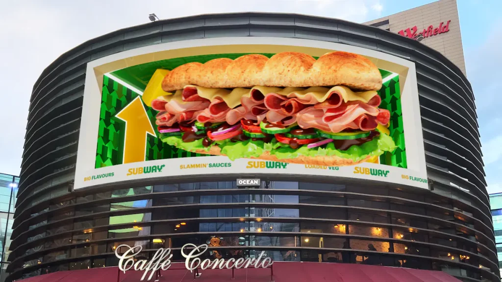 Quá trình tạo ra tác phẩm có thể kéo dài và đòi hỏi sự tập trung cao độ đến tiểu tiết nếu bạn muốn nó trông thực tế. Ví dụ đối với bảng quảng cáo tương tác 3D của Subway dưới đây, điều quan trọng là làm cho chiếc bánh sandwich trông càng giống thật và càng ngon lành càng tốt.