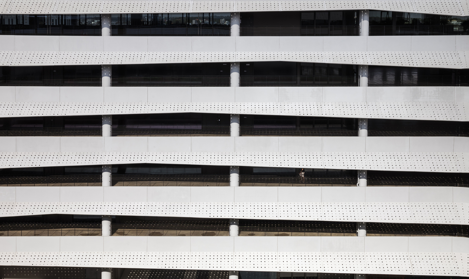 Phần hiên che nắng chạy dọc tòa nhà giúp hạn chế ánh nắng trực tiếp chiếu vào lớp kính. Do đó, văn phòng vẫn đầy ánh sáng tự nhiên mà không bị nhiệt độ bên ngoài tác động, hạn chế lượng sử dụng điều hòa.