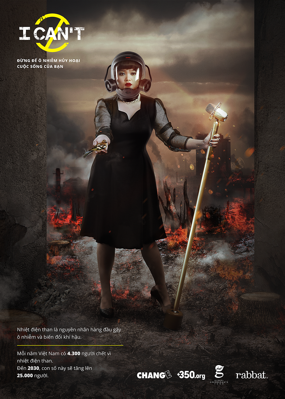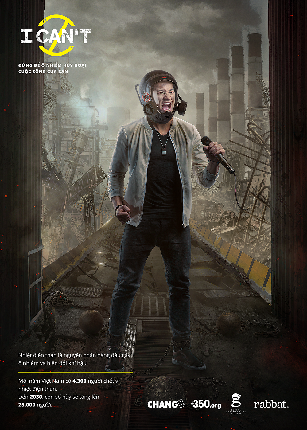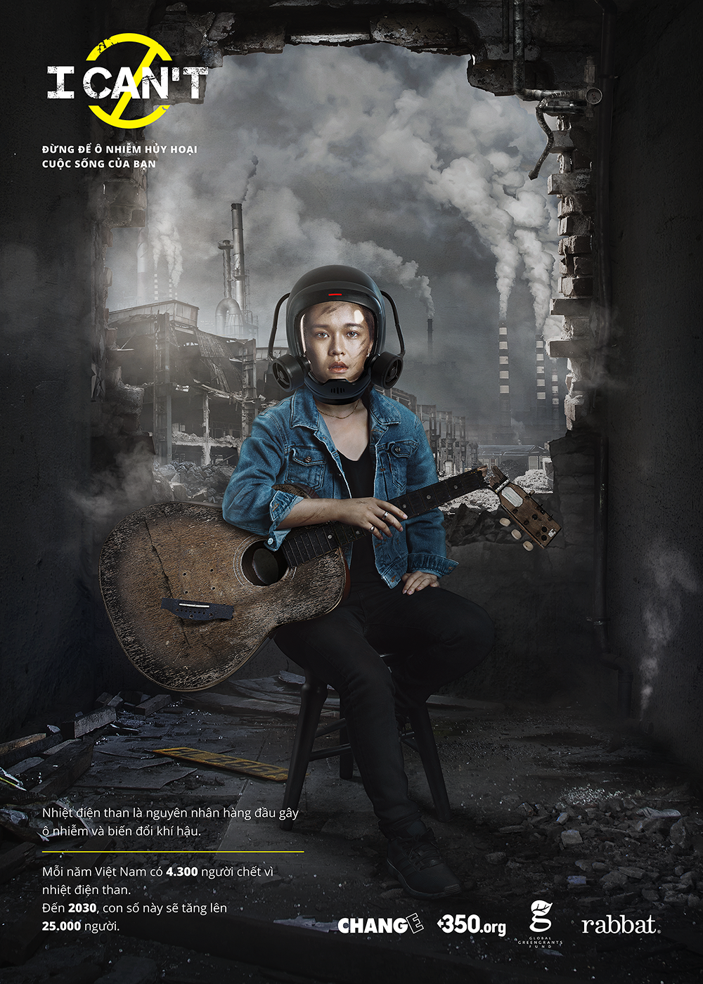 Liệu chúng ta có thể trong một thế giới hoang tàn và đổ nát khi ô nhiễm từ nhiệt điện than thống trị không? Đừng để cuộc sống thường ngày bị đảo lộn và tất cả những ước mơ tươi đẹp nhất bị dập tắt chỉ bởi chiếc mặt nạ phòng độc đáng sợ mà các nghệ sỹ đang đeo. Hãy cùng chúng tôi chia sẻ thông tin này và quan tâm hơn đến các vấn đề môi trường. Chính bạn sẽ là người lên tiếng đề xuất những thay đổi trong chính sách năng lượng để cứu lấy cuộc sống sắp tới của chúng ta và chính hành tinh này.