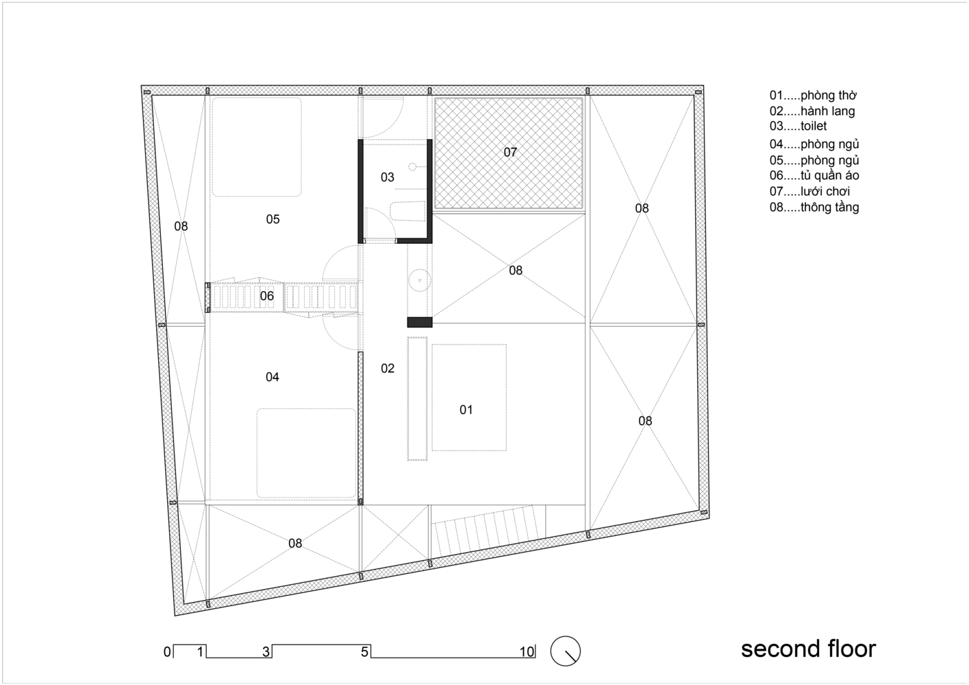 - Tầng 2: Phòng thờ, 02 phòng ngủ, vệ sinh và các không gian trống.