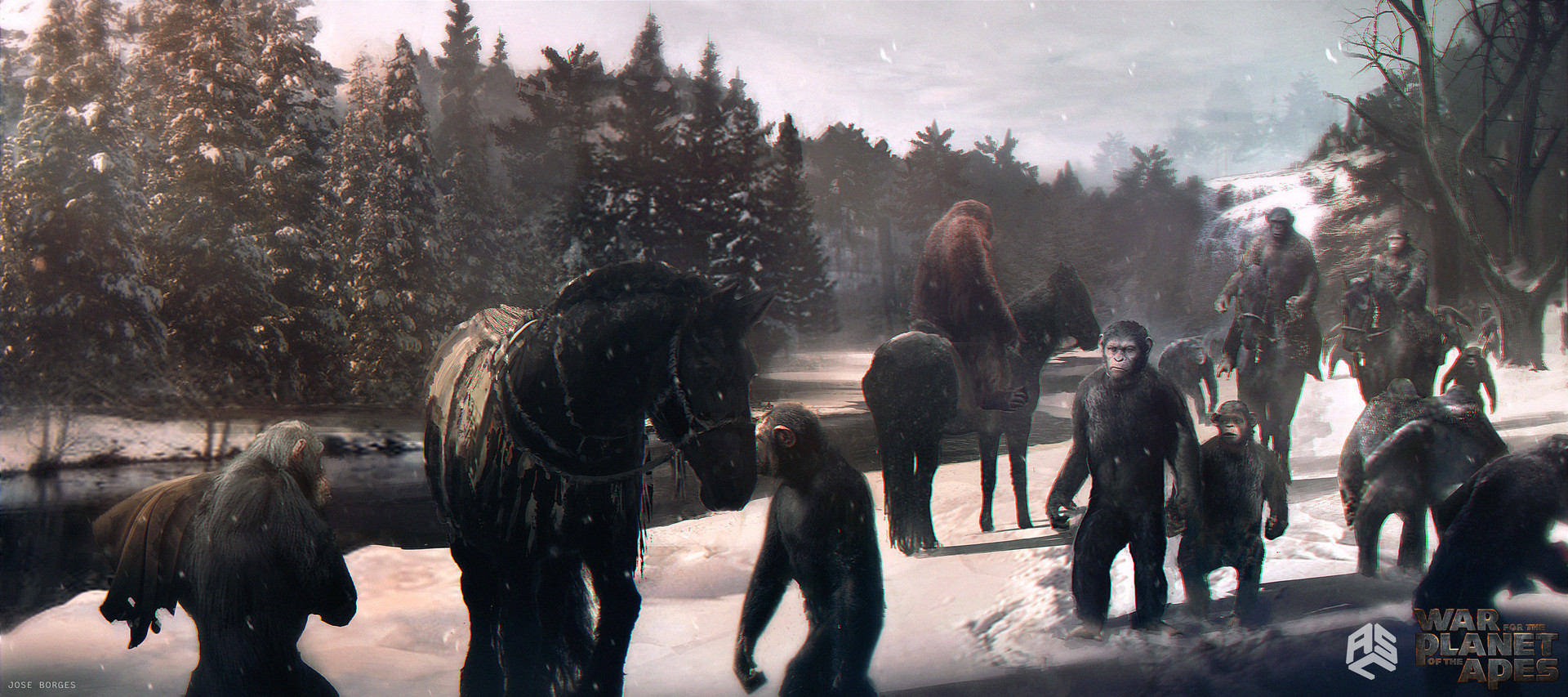 Trong phim War for the planet of the apes – Đại chiến hành tinh khỉ, ngoài cốt truyện hấp dẫn và kĩ xảo đỉnh cao. Phim còn khắc họa được thế giới “hậu tận thế” vô cùng xuất sắc và chân thực. Hãy cùng xem những khung tranh do Jose Borges, Aaron Sims Creative và John J. Park trước khi chúng được tái hiện trên màn ảnh nhé.