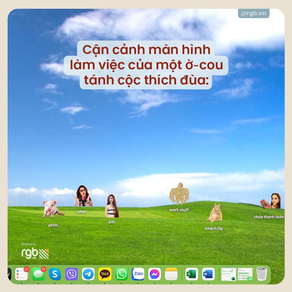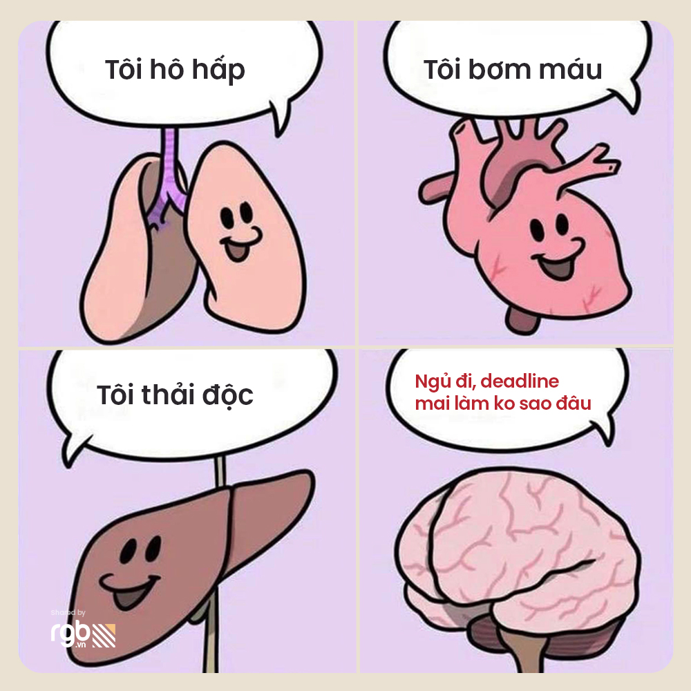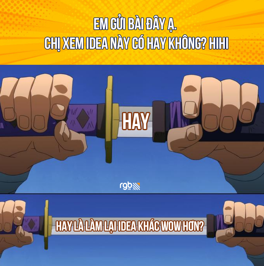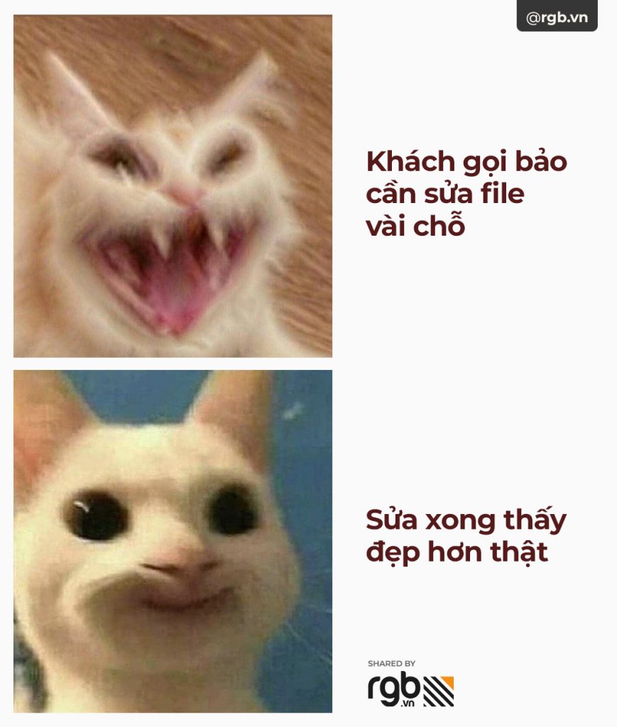 Meme là thứ không thể thiếu trong cuộc sống designer và những người làm agency. Để chuỗi ngày chạy deadline thêm vui vẻ, nạp một chút vitamin meme cùng RGB nhé!