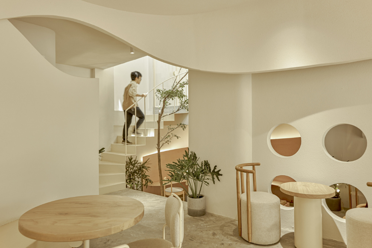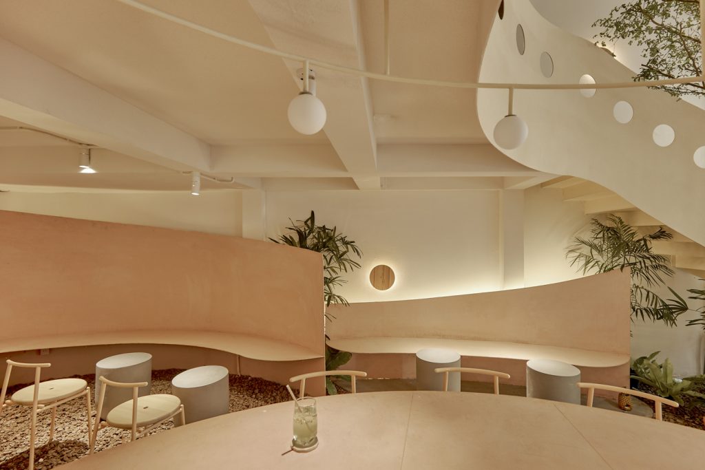 Về cách bố trí không gian, tầng trệt với tinh thần đưa sân vườn vào nhà tạo cảm giác “trong nhà mà ngoài trời” thích hợp cho khách ngồi nhanh hoặc ngồi quanh quán nhìn khu pha chế. Khu vực tầng 2 và tầng 3 dành cho những người ngồi lâu hơn hoặc đi theo nhóm. Nếu sân thượng là khu vườn trên không thì phần đèn như cành cây nâng đỡ tổ ấm, đồng thời đây cũng là điểm nhấn không gian cho những tín đồ mê check in và là khu hút thuốc.