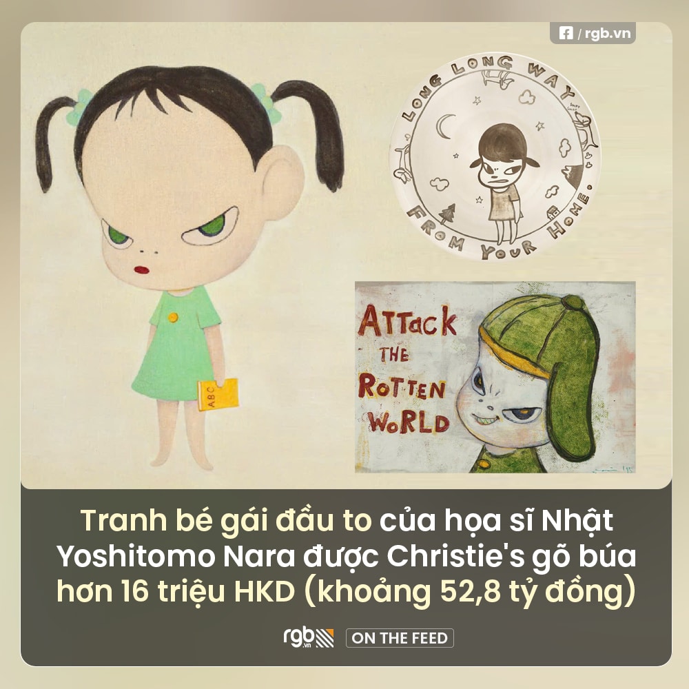 Tác phẩm bé gái đầu to do họa sĩ Yoshitomo Nara vẽ được Christie’s gõ búa 16,7 triệu HKD (khoảng 52,8 tỷ đồng) hôm 27/9.