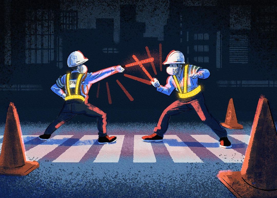Qua bộ tranh, nghệ sĩ lan tỏa sự hứng khởi và mang tới những góc nhìn rất thú vị trong cuộc sống hiện tại. Cảm hứng thể thao từ sự Olympic lan tỏa khắp đường phố, những người đi đường nhập vai thành vận động viên điền kinh, cây dù bị gió thổi khi trời mưa hóa thành cây đuốc đầy sáng tạo, một chủ cửa hiệu tham gia bộ môn đẩy ta hay nhóm người đang ăn mừng chiến thắng… khiến người xem vô cùng ấn tượng. Tất cả nhân vật đều được thể hiện sau lớp khẩu trang, ghi lại một thời khắc khó nào quên của chúng ta, khi mà mọi sự kiện đều không thể được diễn ra bình thường như trước đây.