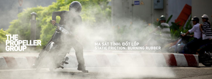 Bộ tác phẩm này đề cập đến chủ đề trung tâm xoay quanh văn hóa xe gắn máy. Việt Nam là đất nước có tỉ lệ xe máy trên đầu người cao nhất trên thề giới. Hơn 85% dân số sử dụng phương tiện này như là phương thức đi lại chính. Chạm đến những vấn đề về kinh tế, sự phát triển đô thị toàn cầu, công nghiệp, tính cá nhân, sự nổi loạn và tốc độ, ‘Ma sát Tĩnh: Đốt Lốp’ là cả một nỗ lực nhằm thảo luận những vấn đề rộng hơn với chỉ một hành động đơn giản – sự đốt lốt được sử dụng chủ yếu trong văn hóa đua xe đường phố.
