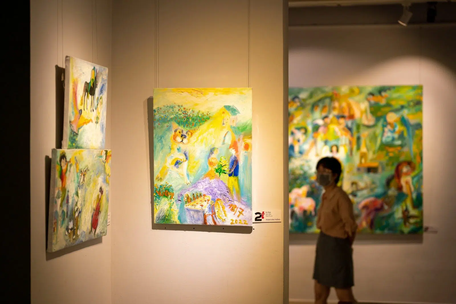 Còn với Thắng thì: “Mỗi người có những nội tâm riêng, không ai giống ai. Tranh cũng vậy, nó là một phần của cuộc sống, cũng có những cảm xúc và câu chuyện riêng. Triển lãm lần này chủ đề chính mà em thể hiện là tình yêu hạnh phúc của con người trong đời sống hằng ngày, đó là những điều thú vị mà của cuộc sống mang lại cho em. Qua đây em mong rằng những bức tranh của em sẻ lan toả thông điệp tích cực hướng tới sự bình yên qua từng tác phẩm, cũng như người xem tranh cảm nhận được sự thú vị khi thưởng tranh thông qua mỗi tác phẩm khác nhau.”