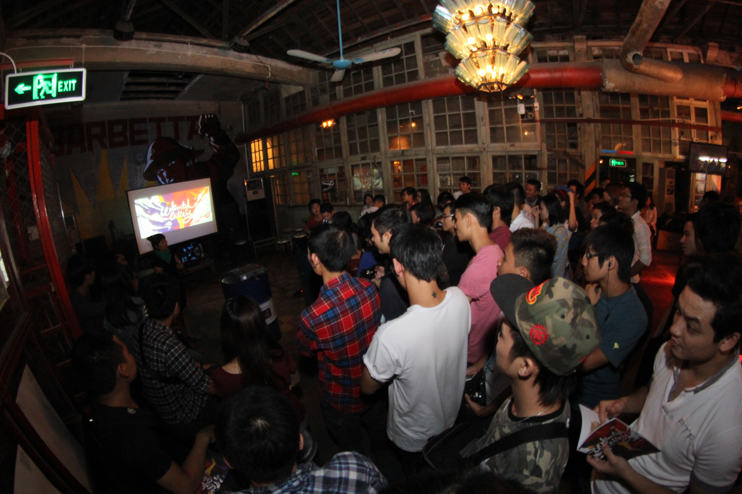 Các nghệ sĩ tại miền Nam giao lưu với khán giả. Từ trái sang: Wild Wolf, Tùng Crazy Monkey, Lê Quốc Huy, Thủy Mắt Tít, Tôn Bùi, Khang Nhà Văn