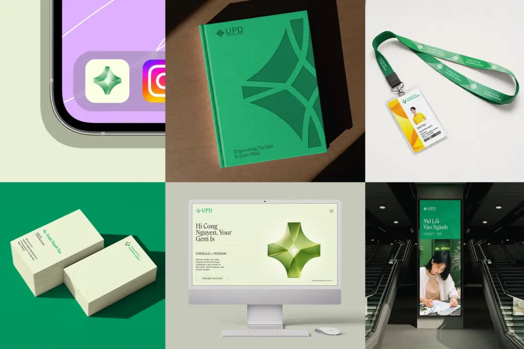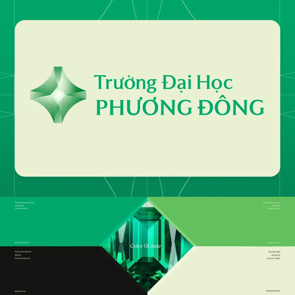 Trong bộ nhận diện mới của Trường Đại học Phương Đông (UPD), sắc xanh ngọc không chỉ là lựa chọn mang tính thẩm mỹ mà còn là điểm neo cho toàn bộ concept “viên ngọc tri thức”.