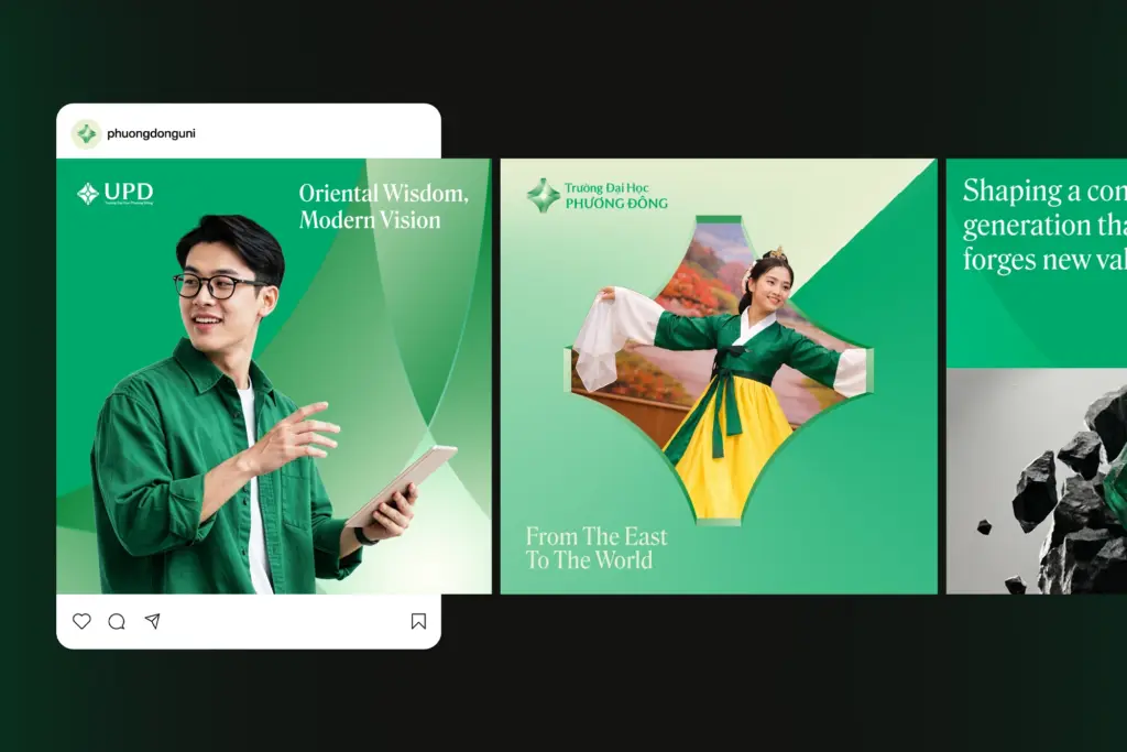 Ở góc nhìn branding, đây là cách Trường Đại học Phương Đông chuyển hóa tinh thần “East Values – West Methods” thành trải nghiệm thị giác: giữ lại chiều sâu văn hóa, nhưng thể hiện bằng một hệ thống thiết kế hiện đại và linh hoạt.