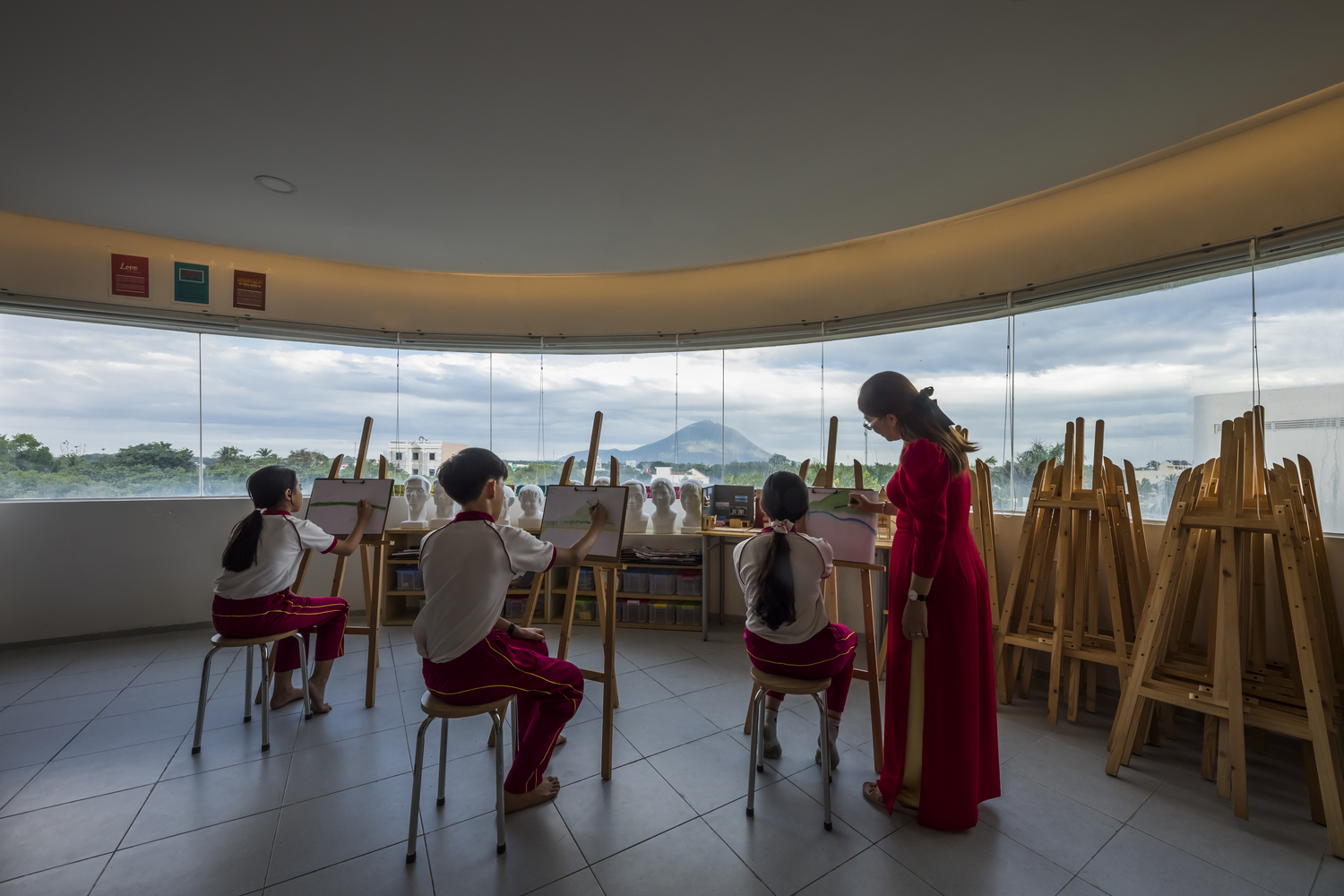 Việc thiết kế được thực hiện từ những thảo luận với đơn vị tổ chức giáo dục nhằm tìm kiếm giải pháp cho phòng học – mô đun cơ bản và quan trọng cho quần thể kiến trúc để có thể tối ưu việc giảng dạy và học tập.