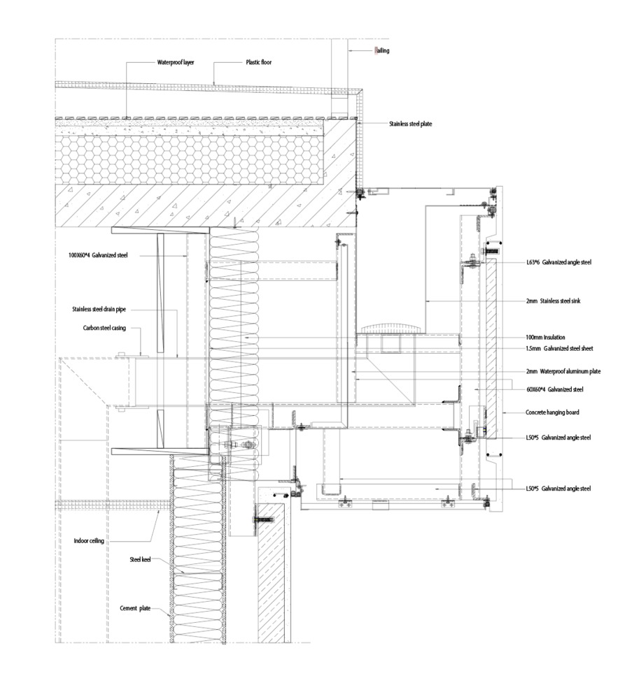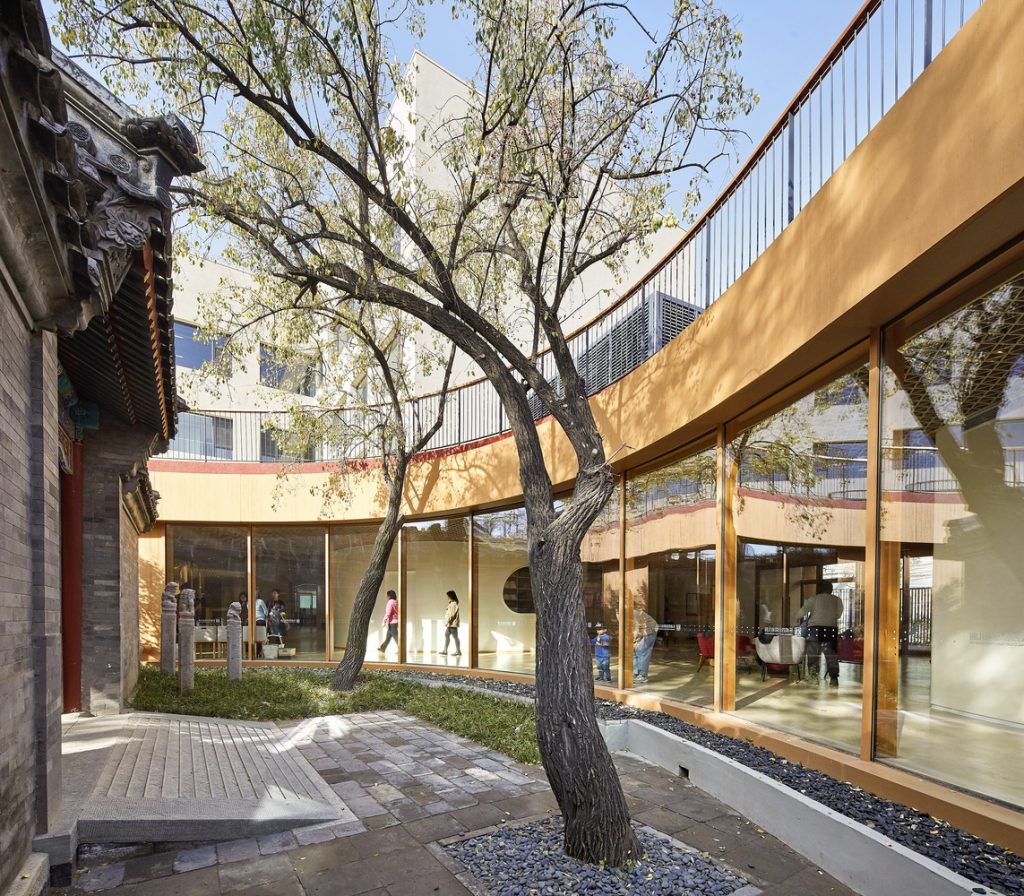 Khu vực xây dựng có diện tích 9.275 mét vuông, bao gồm một sân theo kiểu tứ hợp viện (Siheyuan) nguyên bản từ thế kỷ 18, một sân bản sao liền kề được xây dựng vào những năm 1990 và một tòa nhà hiện đại bốn tầng.