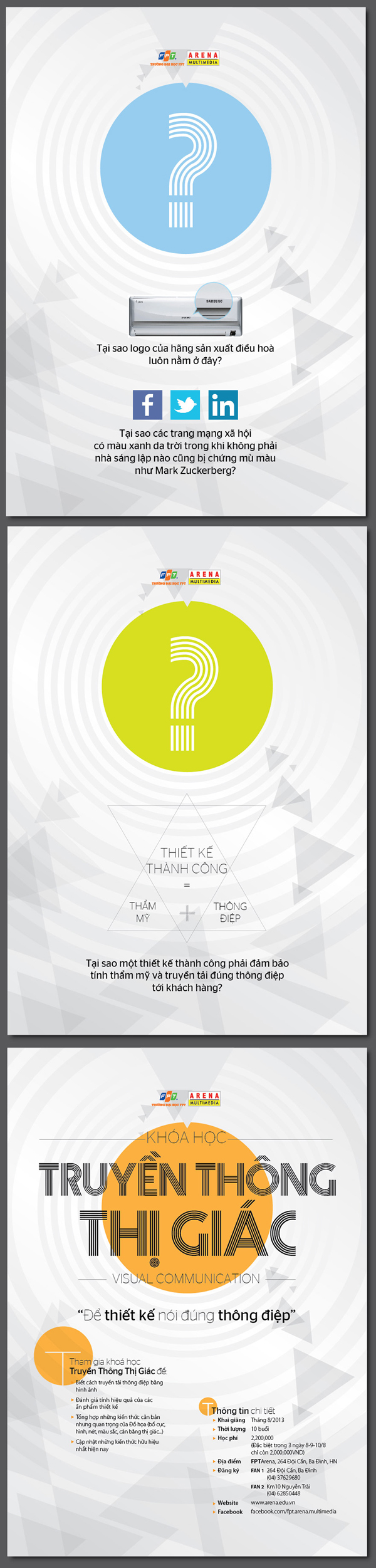 Chính vì thế, để lấp một lỗ hổng quan trọng về mảng kiến thức này, Trường đào tạo Mỹ thuật đa phương tiện FPT Arena mở khóa học ngắn hạn về Truyền thông thị giác (Visual communication) dành riêng cho những bạn trẻ đam mê và có nhu cầu tìm hiểu về công việc thiết kế.