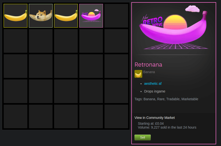 Để thêm phần “nghiêm túc” và hấp dẫn, tựa game Banana cho phép người chơi bán các quả chuối này dưới dạng vật phẩm ảo cho người chơi khác, tương tự với skin vũ khí hiếm trong game Counter-Strike 2.