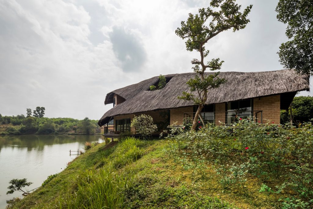 “Túp lều tranh” của Mr. Hùng, nằm ở làng Mít, xã Cổ Đông, thị xã Sơn Tây, ngoại ô phía tây Hà Nội. Mọi không gian trong ngôi nhà được thiết kế để thấm đẫm thực vật, gió và ánh sáng mặt trời. Thay vì cải tạo và san bằng, nền nhà được nâng lên nương theo địa hình để tránh mối mọt, ẩm ướt cũng như đảm bảo thoát nước cho bề mặt tự nhiên.