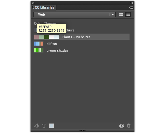Ví dụ như trong Indesign, vào Window > CC Libraries. Theme của bạn đã kì diệu có sẵn ở đó, sẵn sàng được sử dụng cho project của bạn. Nhấn đôi 1 swatch trong bảng thư viện CC, add theme vào bảng Swatch chính. Dạo quanh icon Creative Cloud trong bảng thư viện CC đảm bảo thư viện của bạn được cập nhật đầy đủ.