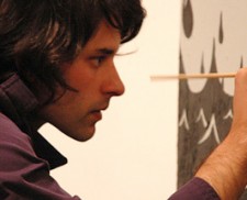 Tiếp theo, chúng ta sẽ tạo ra dây giày, tạo một layer mới, chọn Brush Hard Round (cứng tròn) từ bảng Brush Presets và thiết lập size là 40px và vẽ một đường đơn giản như là điểm neo ở trung tâm 2 lỗ dây (xem hình). Sau khi đã thực hiên xong, nhân đôi layer này nhiều lần và đặt chúng ở những vị trí trên lỗ dây. Thiết lập Layer Style cho layer dây giày và sau đó chúng ta chỉ cần Copy Layer Style và Paste nó vào các layer còn lại.. Chú ý: Pattern được sử dụng được gọi là vải bố.