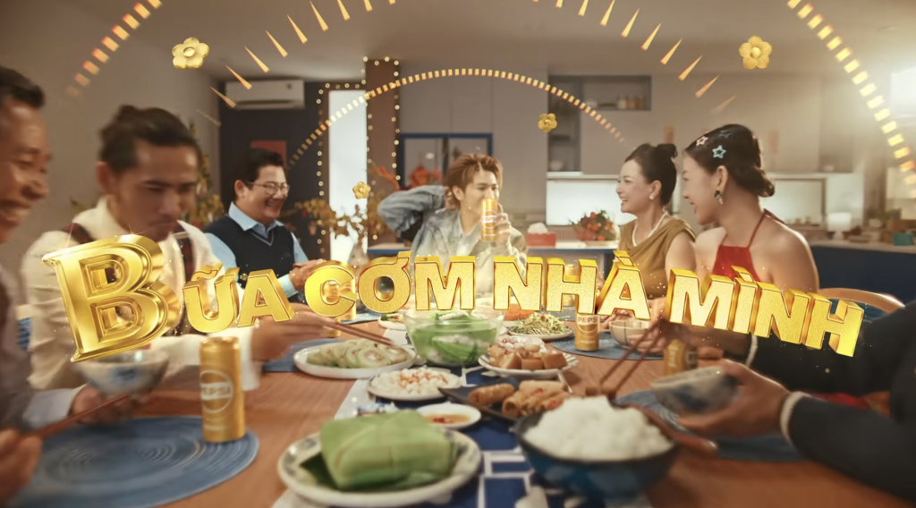 Với sự tham gia của Captain Boy, TVC “Cùng Pepsi Mang Tết về nhà – Trọn vị bữa cơm nhà mình” đặt trọng tâm vào bữa cơm gia đình – nơi những người thân sum họp sau một năm xa cách. Khác với các quảng cáo Tết truyền thống tập trung vào sự hoành tráng, sản phẩm này khắc họa những khoảnh khắc đời thường nhưng đầy tình cảm: tiếng cười bên mâm cơm, những món ăn mẹ gắp đúng sở thích, cả nhà quây quần bên nhau bên chai Pepsi mát lạnh.