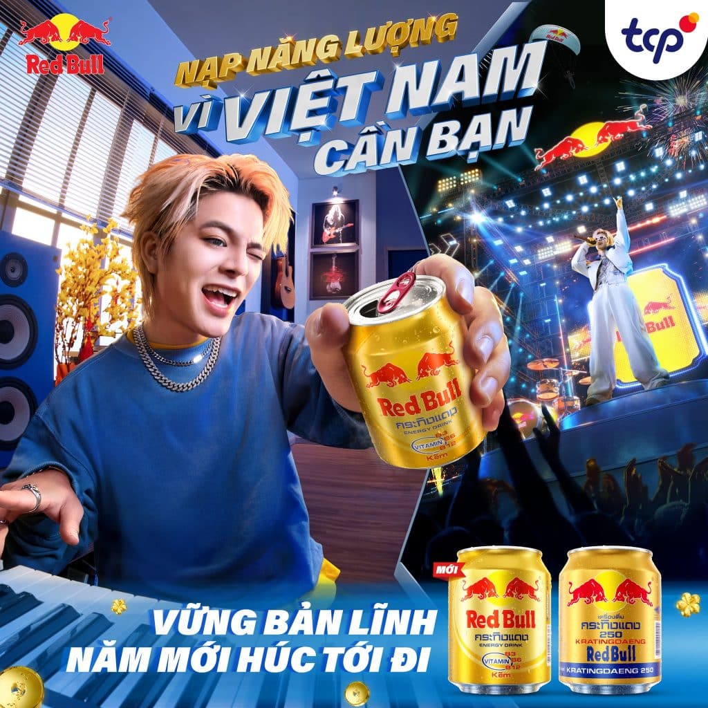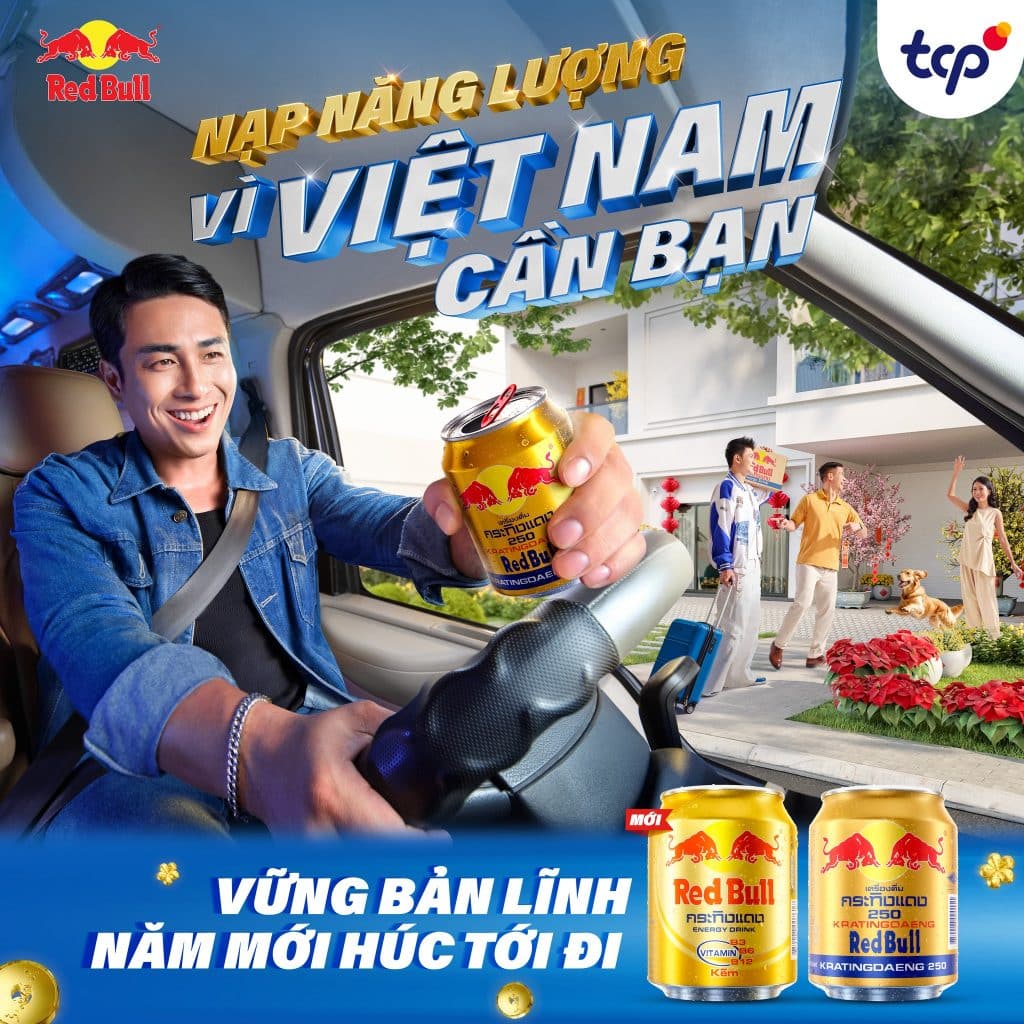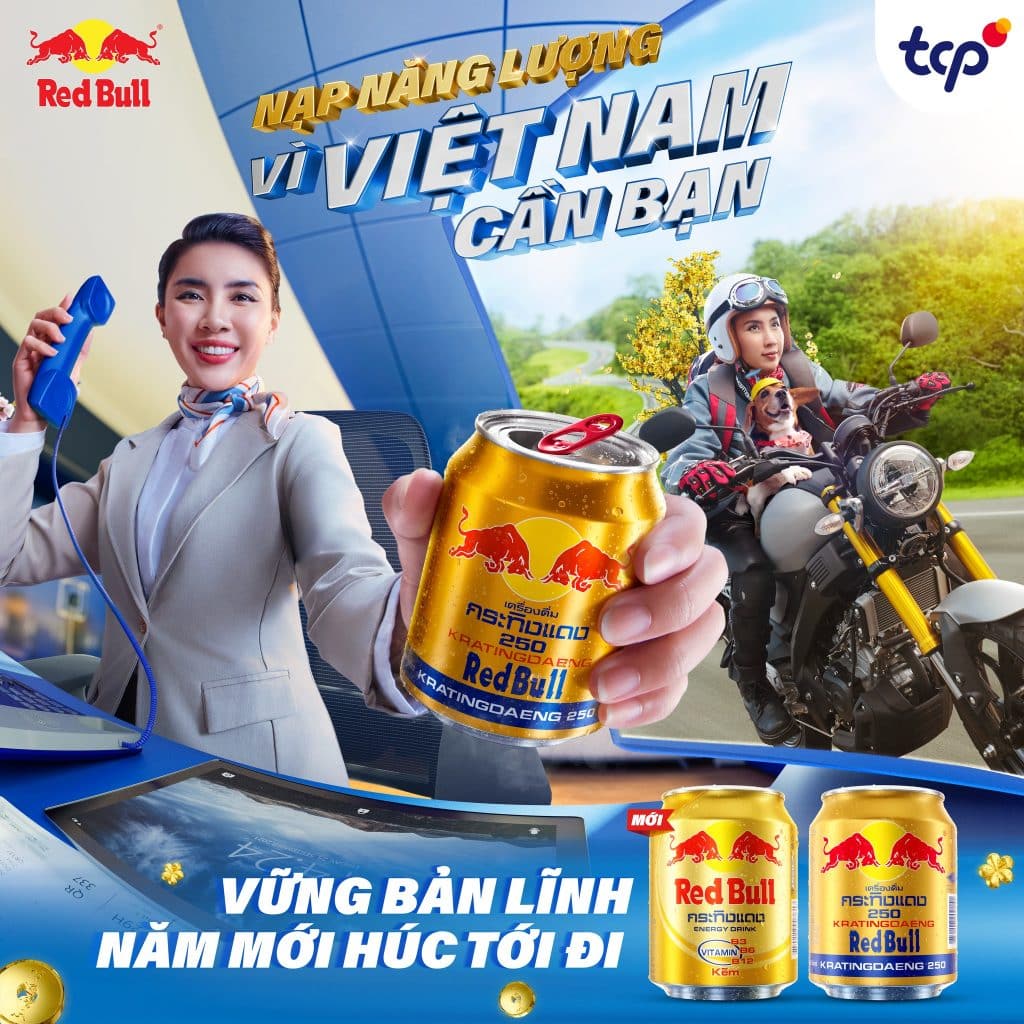 - TVC Tết 2025: Red Bull đã phát hành một TVC ấn tượng, khắc họa hình ảnh những người lao động trong các lĩnh vực khác nhau, từ tiếp viên hàng không, nghệ sĩ đến tài xế, đang nỗ lực làm việc trong dịp Tết. Sản phẩm Red Bull xuất hiện như một người bạn đồng hành, tiếp thêm năng lượng để họ hoàn thành công việc.