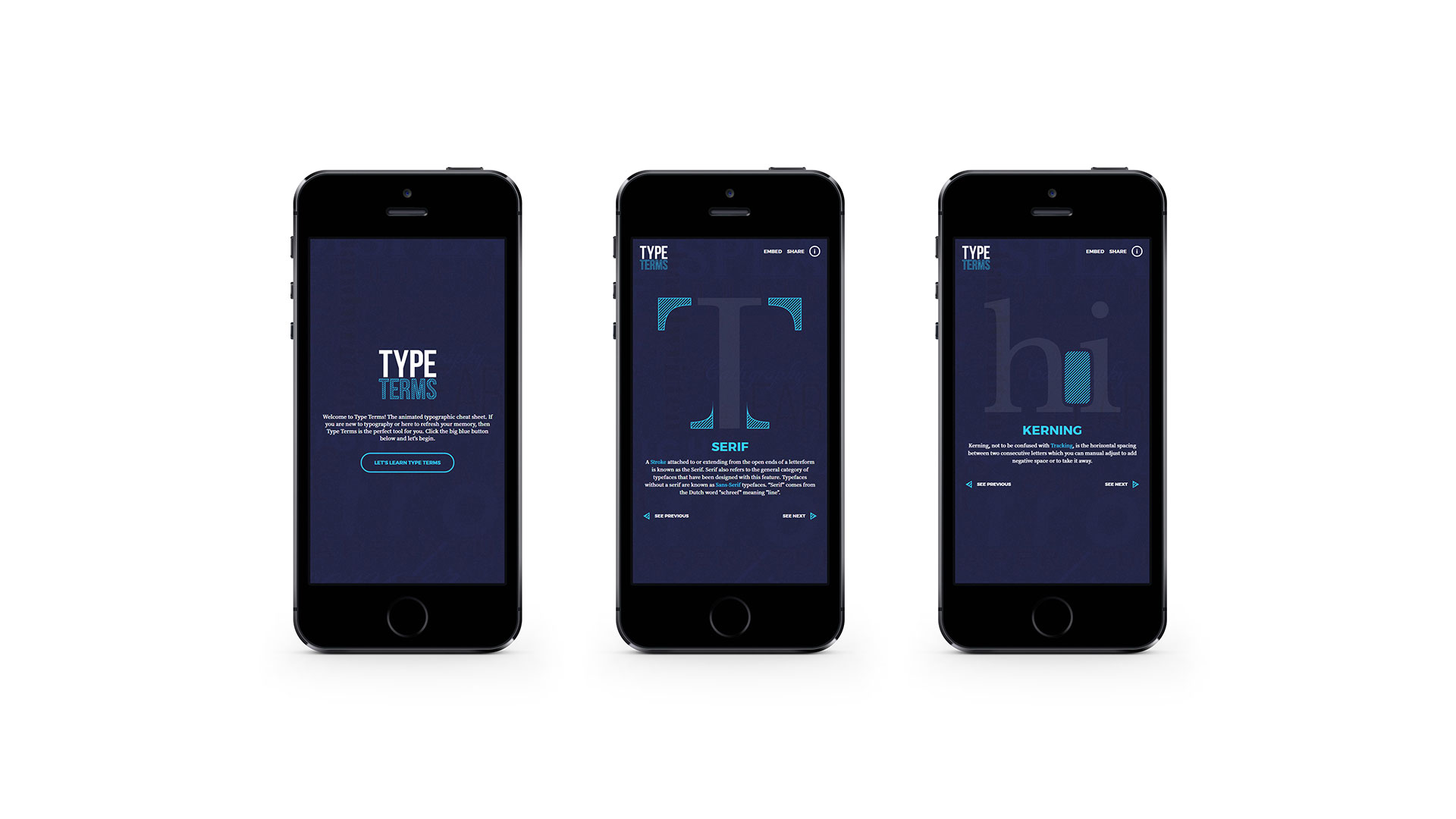 Type Terms đánh dấu tất cả những thuật ngữ quan trọng bạn cần phải biết, kết hợp với animation để giúp bạn thực sự hiểu được các yếu tố quan trọng của typography. Vì vậy, cho dù bạn là một người mới bắt đầu hay là một người cần cải thiện lại kỹ năng, Type Terms đều có thể giúp bạn.