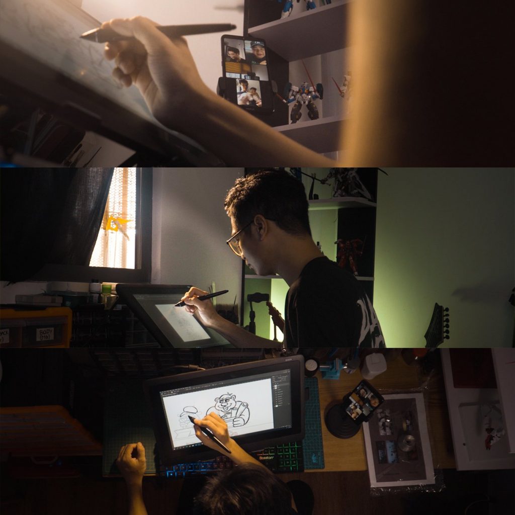 Ngoài ra còn có bạn Phúc Nguyễn (P.) – sinh viên năm 3 chuyên ngành đồ họa hỗ trợ và đảm nhiệm vị trí Post Producer của dự án. Trước đó, chúng mình cũng đã cùng thực hiện một số dự án phim ngắn nhưng chỉ thuộc quy mô sinh viên, bạn Phúc thì chuyên nghiệp hơn với các dự án thương mại, âm nhạc đa dạng” Cami đại diện thành viên nhóm chia sẻ