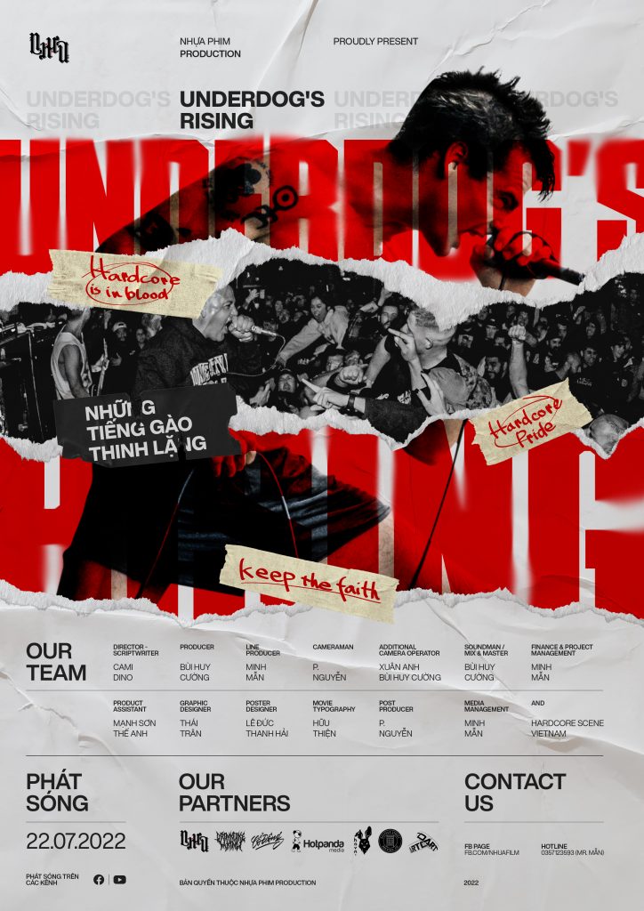 Underdog’s Rising – bộ phim tài liệu thực hiện về thể loại âm nhạc Hardcore đã ra mắt vào cuối tháng 7/2022. Được sản xuất bởi Nhựa Phim – nhóm các bạn sinh viên năm cuối ngành Truyền thông đa phương tiện trường Đại học FPT cơ sở Thành phố Hồ Chí Minh.