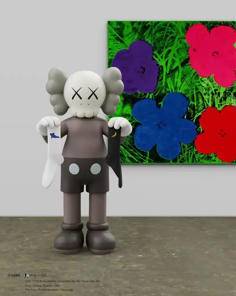 Các tác phẩm đáng chú ý bao gồm áo phông họa tiết có nhân vật BFF của KAWS nằm gần quả chuối mang tính biểu tượng của Warhol, chiếc áo khoác có hình quả chuối của Warhol ló ra khỏi túi và hình minh họa ‘Companion’ bên cạnh ‘Moon Explorer Robot’ của Warhol.