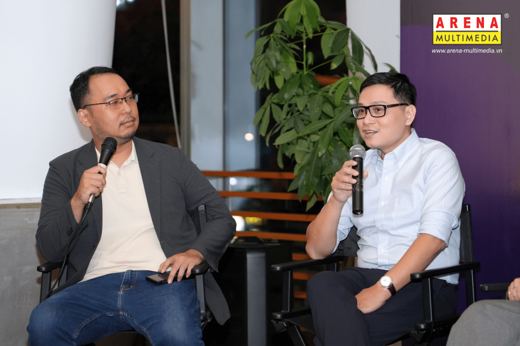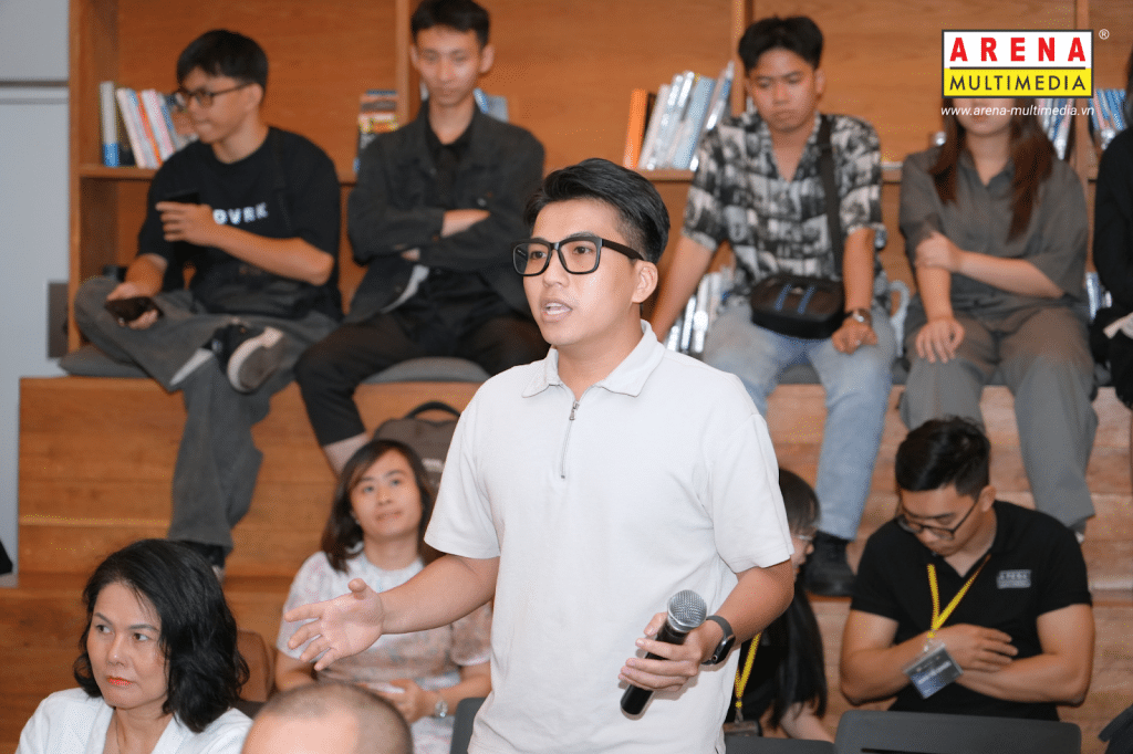 Sau phần chia sẻ của anh Tiến Huy và chị Trúc Quỳnh, các diễn giả có phần trò chuyện trọng tâm trong sự kiện Unlock năm nay, xoay quanh chủ đề “Sáng tạo số và giá trị bản địa”. Nói về tầm quan trọng của văn hóa trong ngành Sáng tạo, anh Vũ Anh Đức – Academic Head @ Arena Multimedia nhấn mạnh đây là yếu tố tạo nên sự khác biệt mà AI không thể nào thay thế con người. Hiểu rõ điều này, Arena Multimedia đã chủ động mang đến hai chương trình đào tạo mới với những môn học về lịch sử thiết kế, hay nghiên cứu nghệ thuật, tạo tiền đề cho tư duy sáng tạo hướng đến việc thấu hiểu giá trị văn hóa bản địa. Theo anh Đức, đây là bước chuyển mình phù hợp với thời đại, với thị trường và nền kinh tế hiện nay.