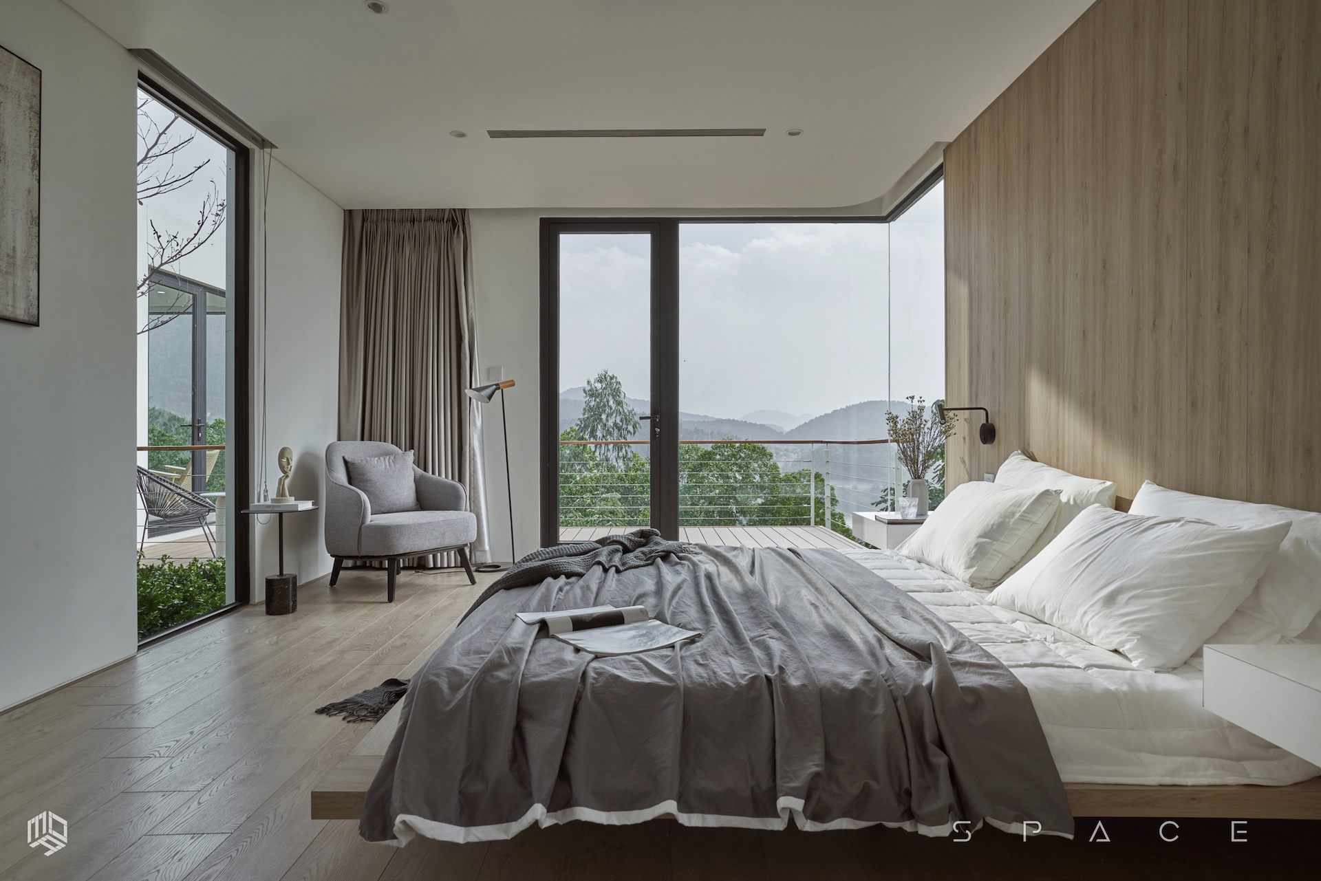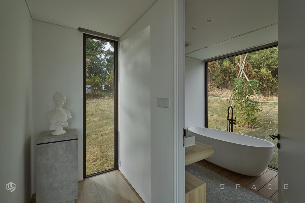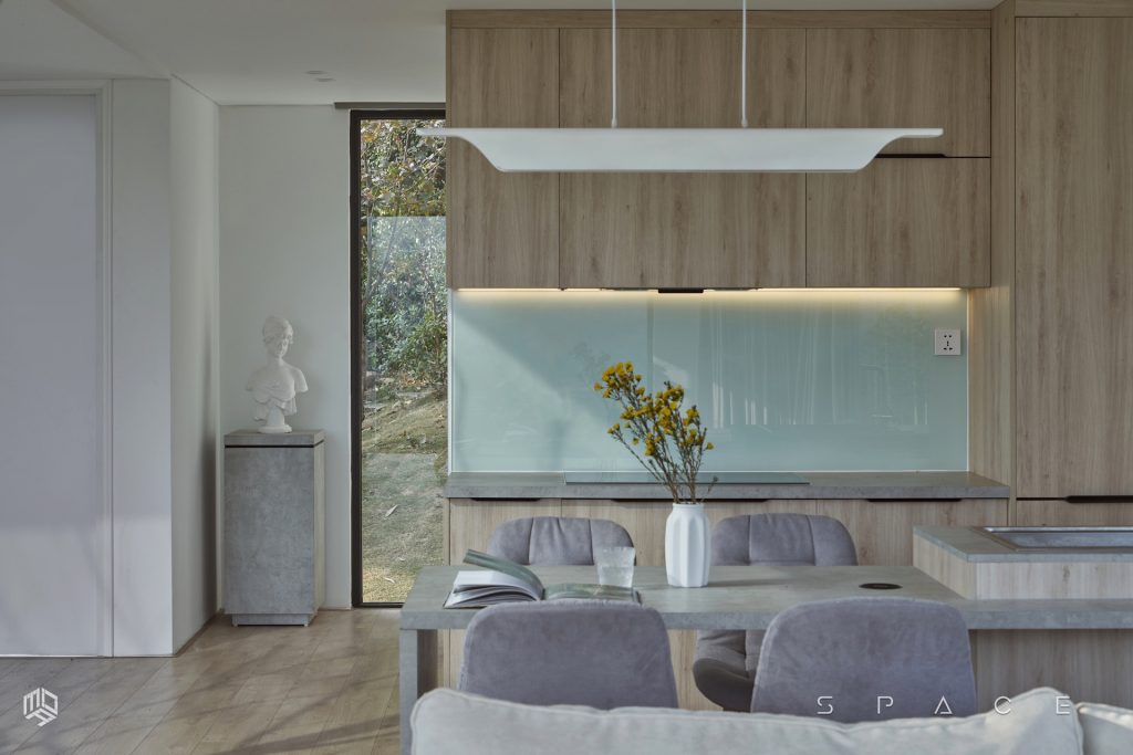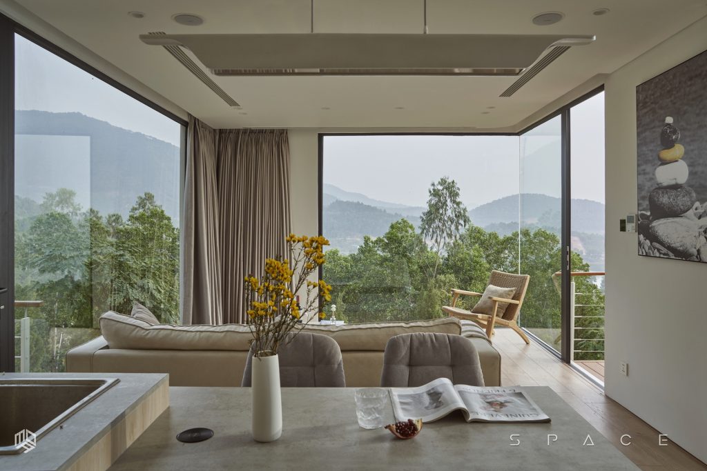 Với diện tích hơn 75m2, Vallée des fleurs là căn nhà đầy tiện nghi được đặt ngay trên ngọn đồi tọa lạc tại vùng núi Minh Trí – Sóc Sơn hoang sơ. Căn nhà được thiết kế lấy cảm hứng từ phong cách Minimalism, tối giản hóa mọi thứ mang đến một vẻ đẹp tinh tế nhưng không hề kém tiện nghi. Với mong muốn tận dụng tối đa khung cảnh thiên nhiên, không gian được bố trí nhiều khung kính lớn với tầm view rộng hướng thẳng ra phía hồ Ban Tiện và sân golf Minh Trí.