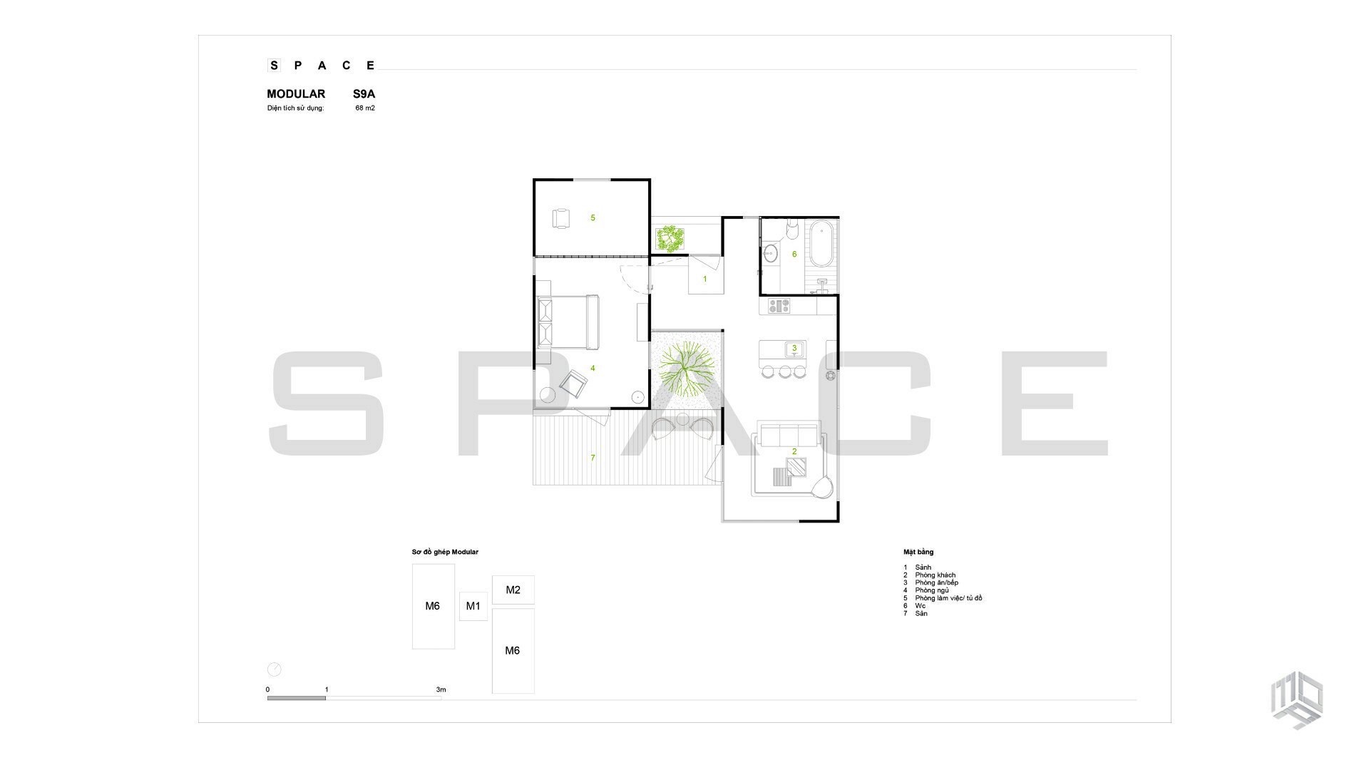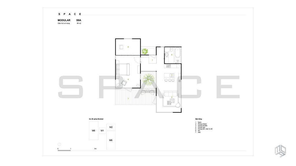 - Diện tích: 75,5m2
