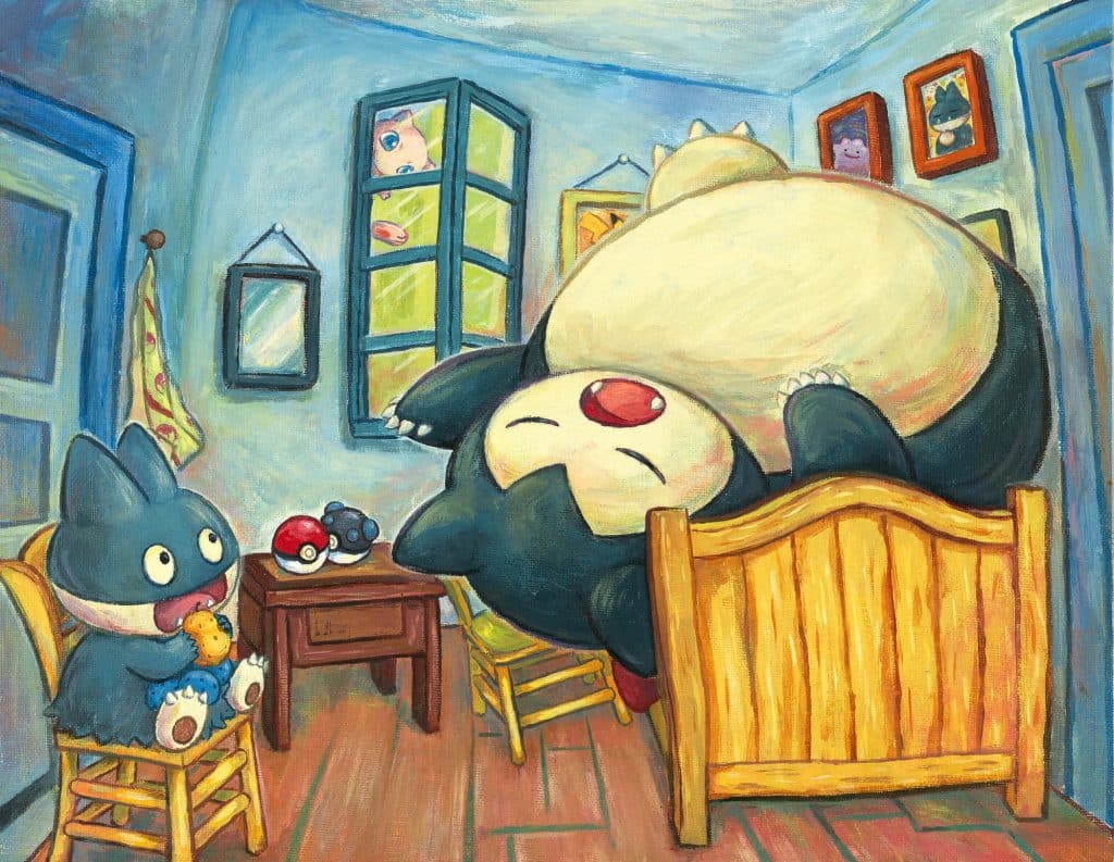 Trọng tâm của sự hợp tác này nằm ở tầng một của tòa nhà Rietveld, nơi các tác phẩm mang tính biểu tượng của Bảo tàng Van Gogh đã truyền cảm hứng cho sáu bức tranh do các nghệ sĩ từ The Pokémon Company chế tác. Bạn sẽ thấy Pikachu được mô phỏng lại theo phong cách bức Chân dung tự họa với Mũ nỉ màu xám (1887), Pokémon Sunflora ẩn trong một biến thể của Hoa hướng dương nổi tiếng của Van Gogh (1889), và Snorlax & Munchlax nhàn nhã ngả lưng trong một tác phẩm lấy cảm hứng từ bức tranh The Bedroom (1888).