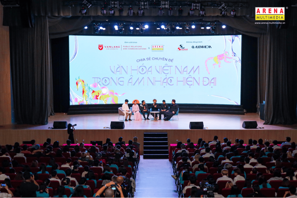 Vào ngày 20.03 vừa qua tại Hội trường Trịnh Công Sơn, Đại học Văn Lang, Arena Multimedia kết hợp cùng Khoa Quan hệ công chúng và Truyền thông tổ chức buổi Chia sẻ chuyên đề: Văn hóa Việt trong Âm nhạc hiện đại, với sự góp mặt của Ca sĩ Hoàng Thùy Linh, Đạo diễn Kawaii Tuấn Anh và bộ ba Music Producer DTAP. Sự kiện nhấn mạnh đến giá trị văn hóa bản địa và nét đẹp truyền thống trong hơi thở âm nhạc hiện đại đến các bạn trẻ tham dự.