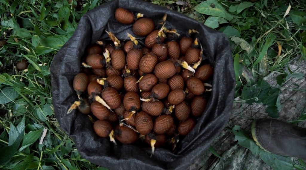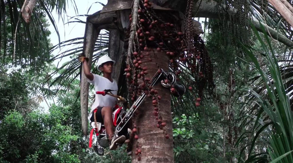 Đây là một loại trái cây phổ biến ở khu vực Nam Mỹ, có hàm lượng vitamin A cao, mọc trên những cây cọ thường cao tới 35 mét nên rất khó tiếp cận. Đó là lý do tại sao chặt cây được coi là cách nhanh nhất để hái quả.