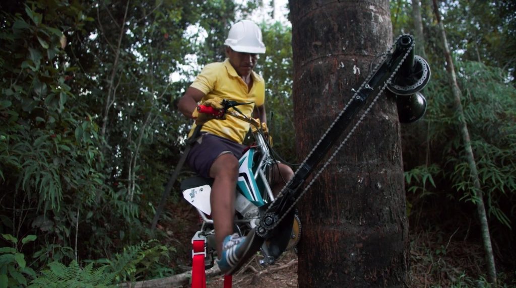 Để giải quyết vấn đề này, Ogilvy Perú đã hợp tác với Honda để cho ra đời chiếc mô tô thẳng đứng “Vertical Bike”, một giải pháp sáng tạo giúp đơn giản hóa việc thu hoạch quả aguaje và quan trọng hơn là tránh việc chặt phá cây cối, góp phần quan trọng vào việc bảo vệ hệ sinh thái nơi đây.