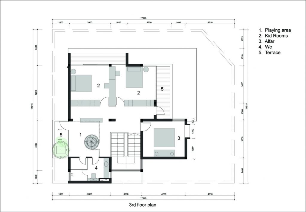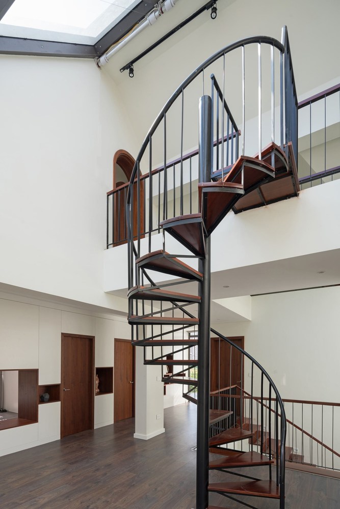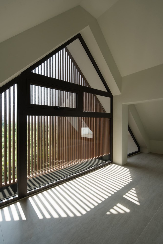 Tương tự, phòng ngủ của con trẻ ở tầng 3 cũng được liên thông với phòng vui chơi trên tầng áp mái bằng không gian thông tầng. Mái nhà bằng kính tạo sân chơi trong suốt và sáng thoáng cho trẻ nhỏ.