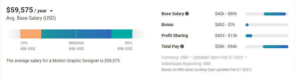 Theo thống kê của Pay Scale, mức lương trung bình đối với vị trí Graphic Designer là 45.958 USD/năm (tương đương khoảng 1 tỷ đồng), còn đối với vị trí Motion Graphics Artist là 59.575 USD/năm (tương đương khoảng 1.3 tỷ đồng). Sự chênh lệch về mức lương cùng với xu hướng thay đổi hành vi tiếp cận truyền thông đa phương tiện của người dùng trên toàn thế giới là hai lý do chính khiến cho nhiều người đang làm trong lĩnh vực Graphic Design chuyển sang Motion Graphics.