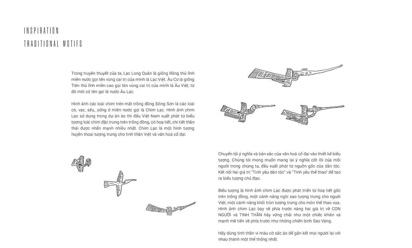 Vietnam National Team Kit là một dự án thiết kế của Tonbui, mang nghệ thuật, văn hóa vào thể thao Việt. Lấy cảm hứng từ hình ảnh chim Lạc và các chất liệu văn hóa truyền thống để làm bật tinh thần và giá trị con người Việt Nam, từ đó thổi vào niềm đam mê thể thao.