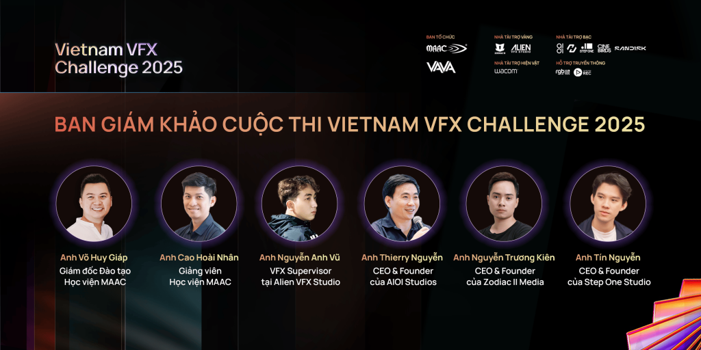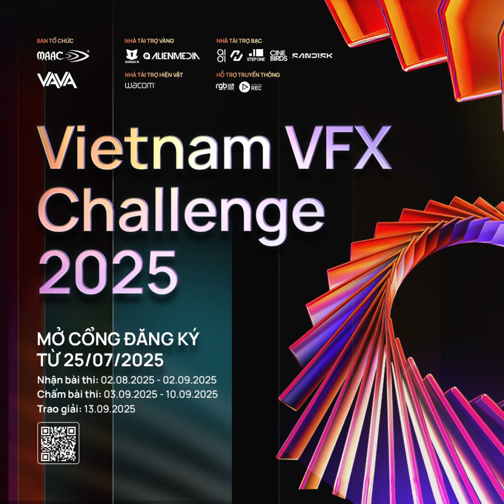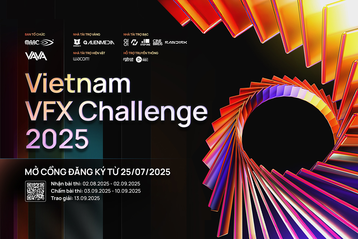 Vietnam VFX Challenge 2025 – Sân chơi sáng tạo Kỹ xảo điện ảnh (VFX) dành riêng cho thế hệ trẻ Việt đam mê công nghệ hình ảnh đã chính thức quay trở lại. Năm 2025, cuộc thi bước vào mùa giải mới với quy mô toàn quốc, do Học viện Kỹ xảo Điện ảnh & Hoạt hình MAAC phối hợp cùng Hiệp Hội Kỹ Xảo Điện Ảnh và Hoạt Hình Việt Nam (VAVA) tổ chức, đồng hành bởi các studio hàng đầu như Alien VFX Studio, Zodiac II Media, CG Record Studio, Step One Studio cùng các nhà tài trợ công nghệ Wacom Vietnam và Sandisk.