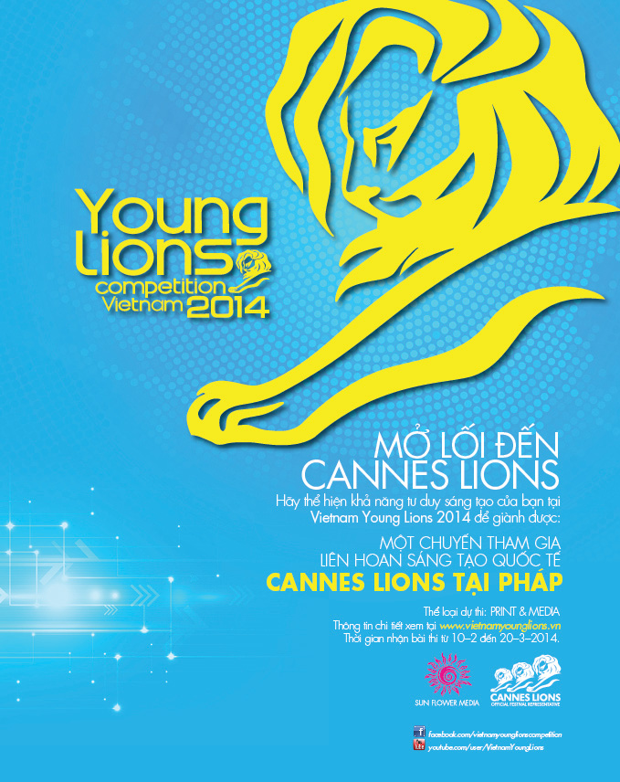 Cuộc thi dành cho những bạn trẻ đang làm việc và có niềm đam mê với lĩnh vực quảng cáo sáng tạo mang tên Vietnam Young Lions (Sư tử trẻ Việt Nam) đã chính thức trở lại ngay đầu năm 2014. Sau 5 lần tổ chức với rất nhiều những trải nghiệm từ các thí sinh và những cơ hội phát triển nghề nghiệp tuyệt vời, hành trình mùa thứ 6 của Vietnam Young Lions hứa hẹn tiếp tục là sân chơi tranh tài không thể bỏ qua.
