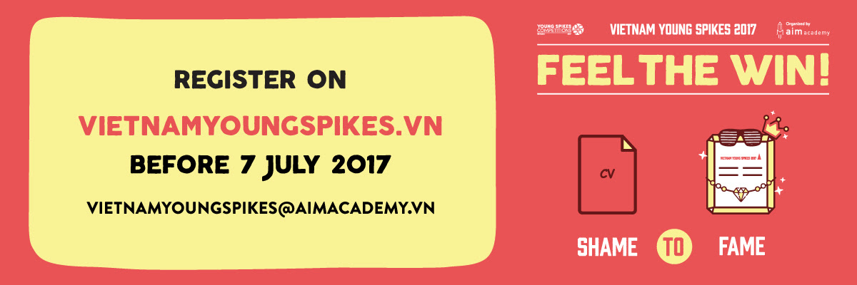 Vietnam Young Spikes 2017 – Cuộc thi lớn nhất quốc gia dành cho sinh viên và người chuyên nghiệp trong ngành MarCom đã trở lại, mang đến cho các bạn trẻ cơ hội trải nghiệm CẢM GIÁC CHIẾN THẮNG tuyệt vời với giải thưởng danh giá mà không cuộc thi nào có được: