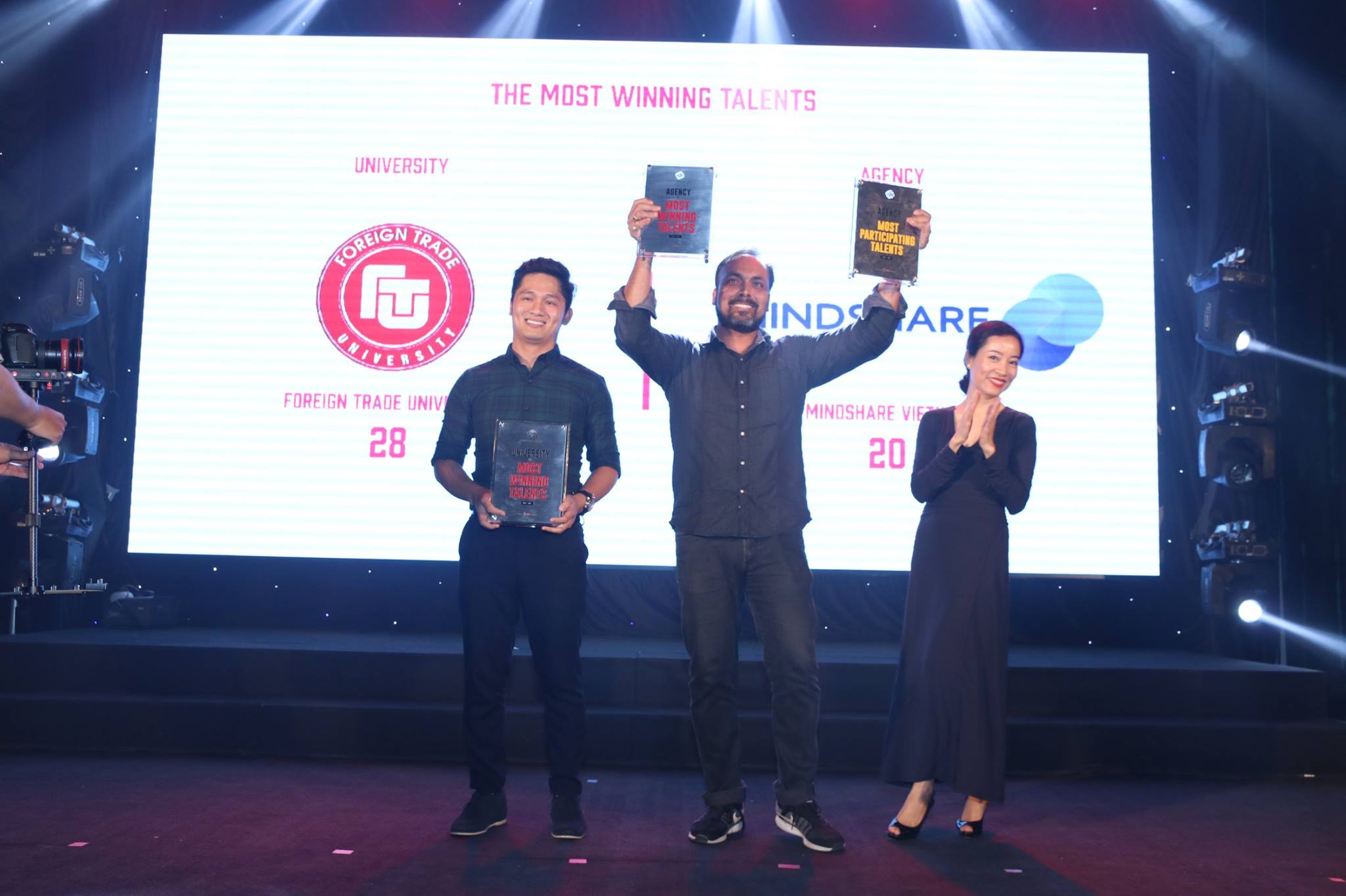 Với tổng số 134 sinh viên tham gia Vietnam Young Spikes và có 28 bạn lọt vào top 3 giải thưởng danh giá nhất trong 4 mùa thi, trường ĐH Ngoại thương được vinh danh với giải thưởng UNIVERSITY OF MOST PARTICIPATING AWARD & UNIVERSITY OF MOST WINNING AWARD. Vượt qua nhiều agency đình đám, Mindshare đã đứng đầu bảng ở hai giải AGENCY OF MOST PARTICIPATING AWARD và AGENCY OF MOST WINNING AWARD với 55 thí sinh tham gia và 20 bạn lọt vào top 3 của bảng chuyên nghiệp Vietnam Young Spikes trong 4 năm 2013 – 2017.