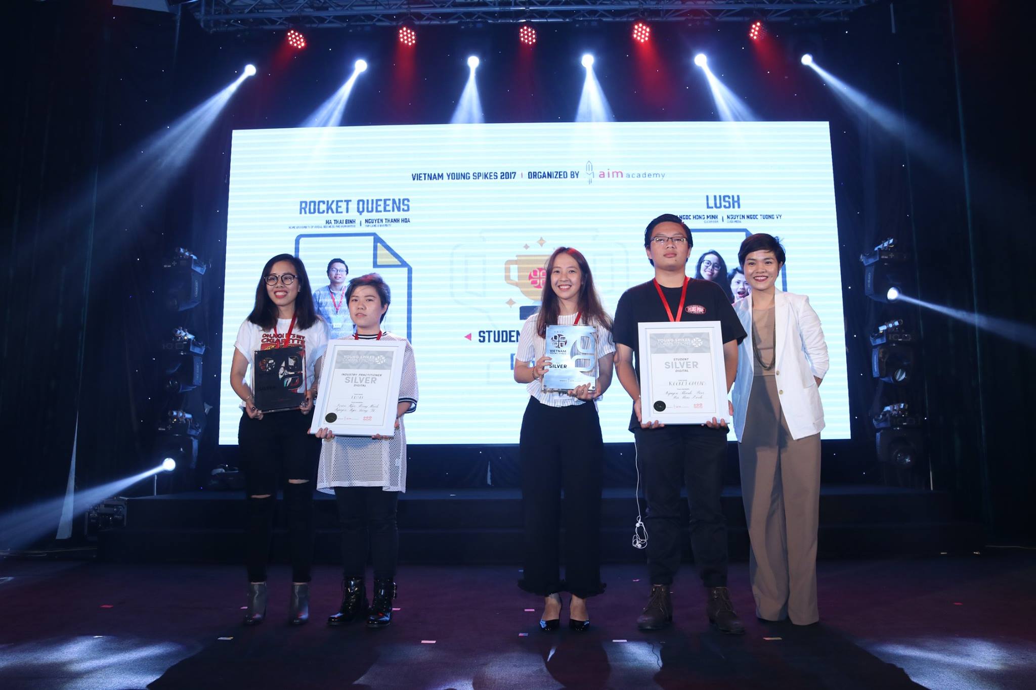 Đặc biệt, đêm trao giải Vietnam Young Spikes 2017 còn có sự góp mặt của cô Andrea Hayes – Festival Director, Spikes Asia. Trong không gian ấm cúng quy tụ hàng trăm bạn trẻ đến từ các trường đại học và agency tên tuổi cùng các chuyên gia hàng đầu, những “ngôi sao” mới nổi của ngành Marketing & Commnication đã toả sáng trên sân khấu. Hãy cùng chiêm ngưỡng những khuôn mặt rạng rỡ trong giây phút đăng quang của các Spiker năm nay.