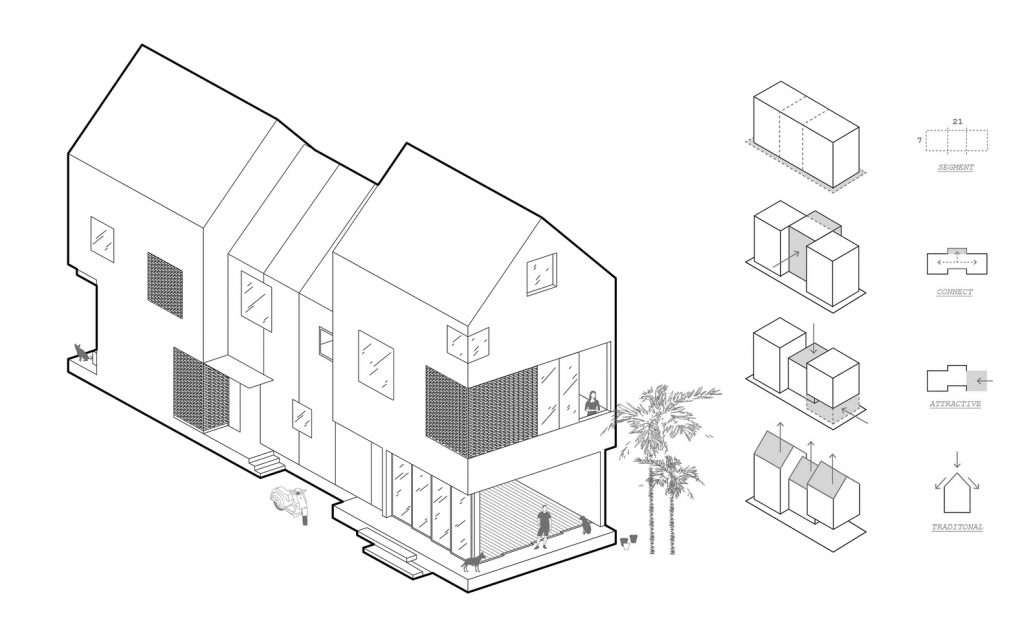 Sự hạn chế về chiều cao và diện tích xây dựng đòi hỏi đội ngũ thiết kế phải tìm ra một lối tư duy mới về không gian sống. Time Architects thiết kế ngôi nhà như thể đó là một con người, một cá tính riêng. Ngôi nhà sẽ tương tác với những người sống trong đó, cũng như cân bằng không khí bên trong với bên ngoài.