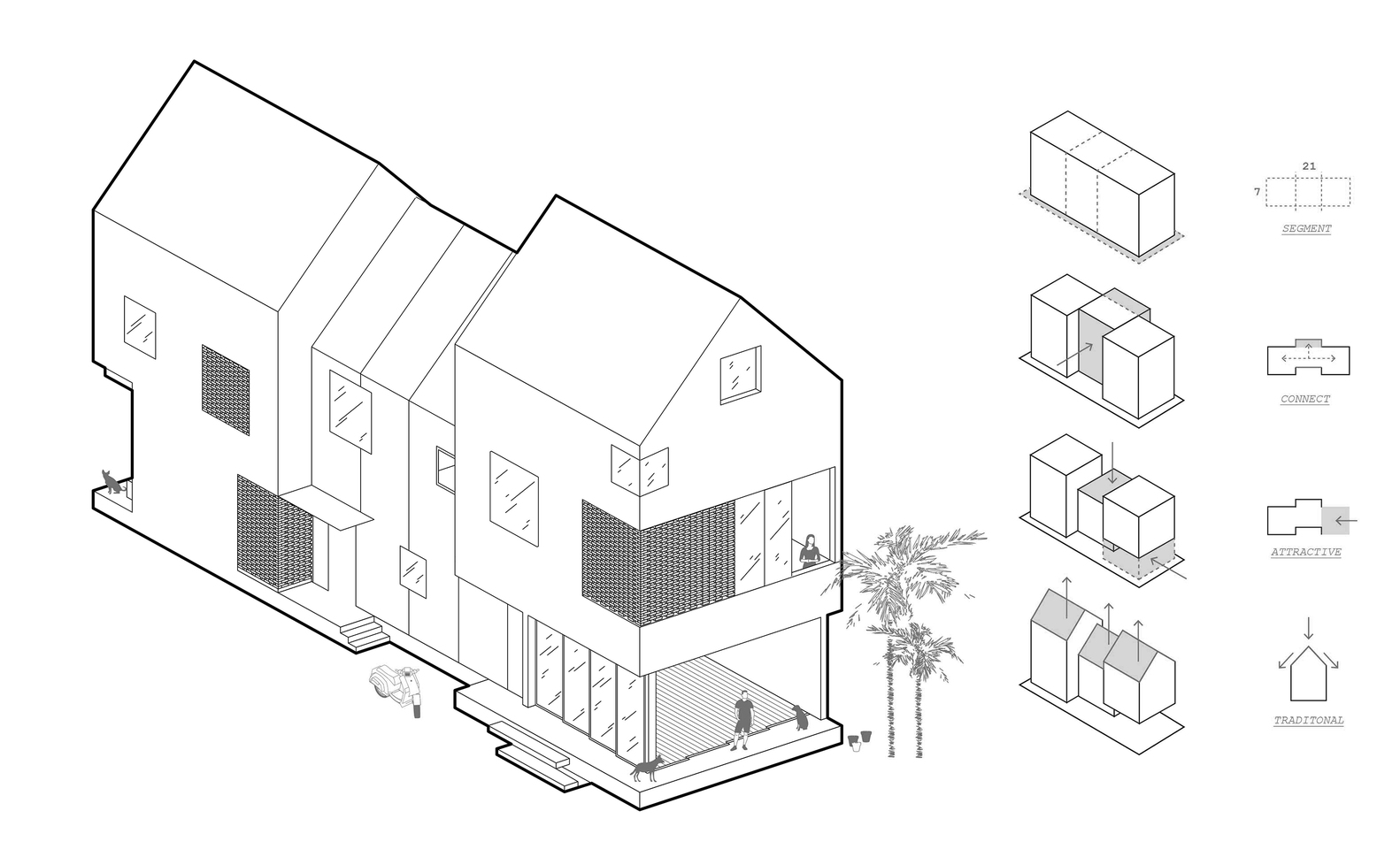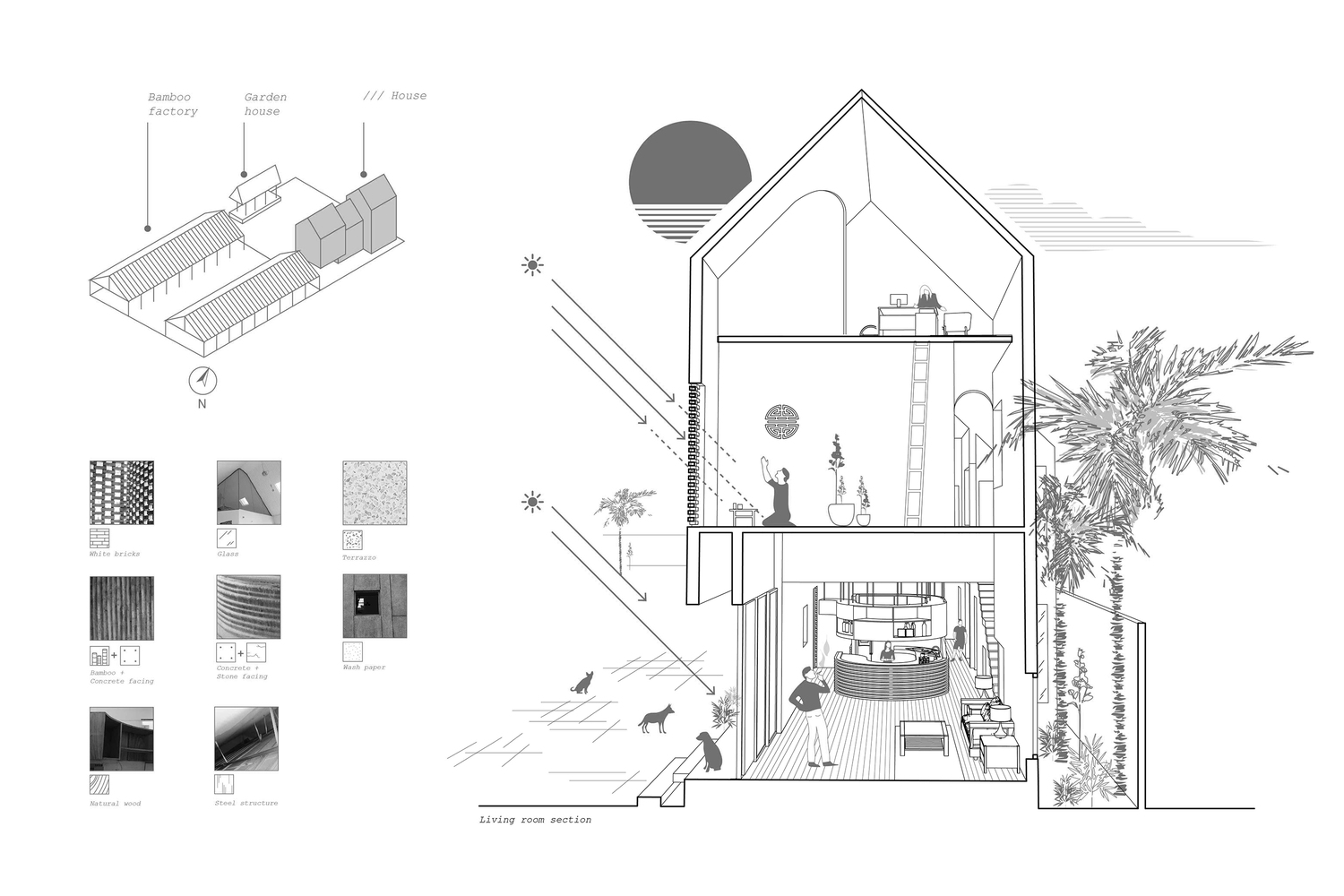 Sự hạn chế về chiều cao và diện tích xây dựng đòi hỏi đội ngũ thiết kế phải tìm ra một lối tư duy mới về không gian sống. Time Architects thiết kế ngôi nhà như thể đó là một con người, một cá tính riêng. Ngôi nhà sẽ tương tác với những người sống trong đó, cũng như cân bằng không khí bên trong với bên ngoài.