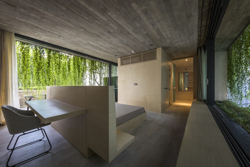 Nếu nhìn từ bên ngoài, hình dạng của ngôi nhà có thể được coi là một chiếc hộp đơn giản nhưng từ bên trong nó lại chứa đựng rất nhiều tầng không gian cũng như sự xen kẽ giữa sáng và tối đan xen với chất liệu bê tông và đá thô. Cuối cùng nhưng không kém phần quan trọng, ngôi nhà mang đến sự thoải mái cho chủ nhân nơi họ có thể tận hưởng một “khu vườn” mang đủ hương sắc của Sài Gòn trong chính ngôi nhà của mình.